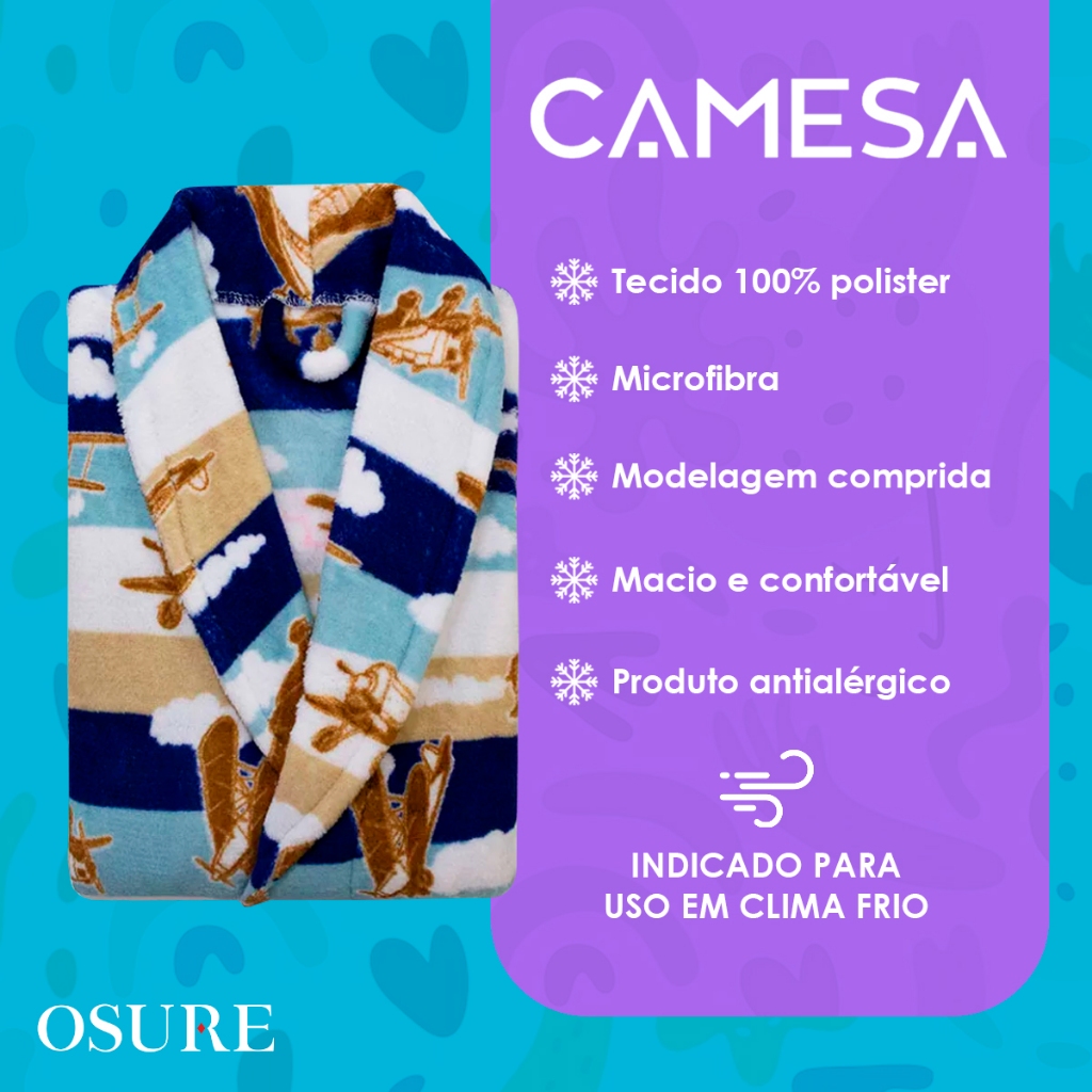 Roupão Infantil Macio Para o Frio e Inverno em Poliéster Camesa Inverno Menina Menino Hobby Térmico Robe Original