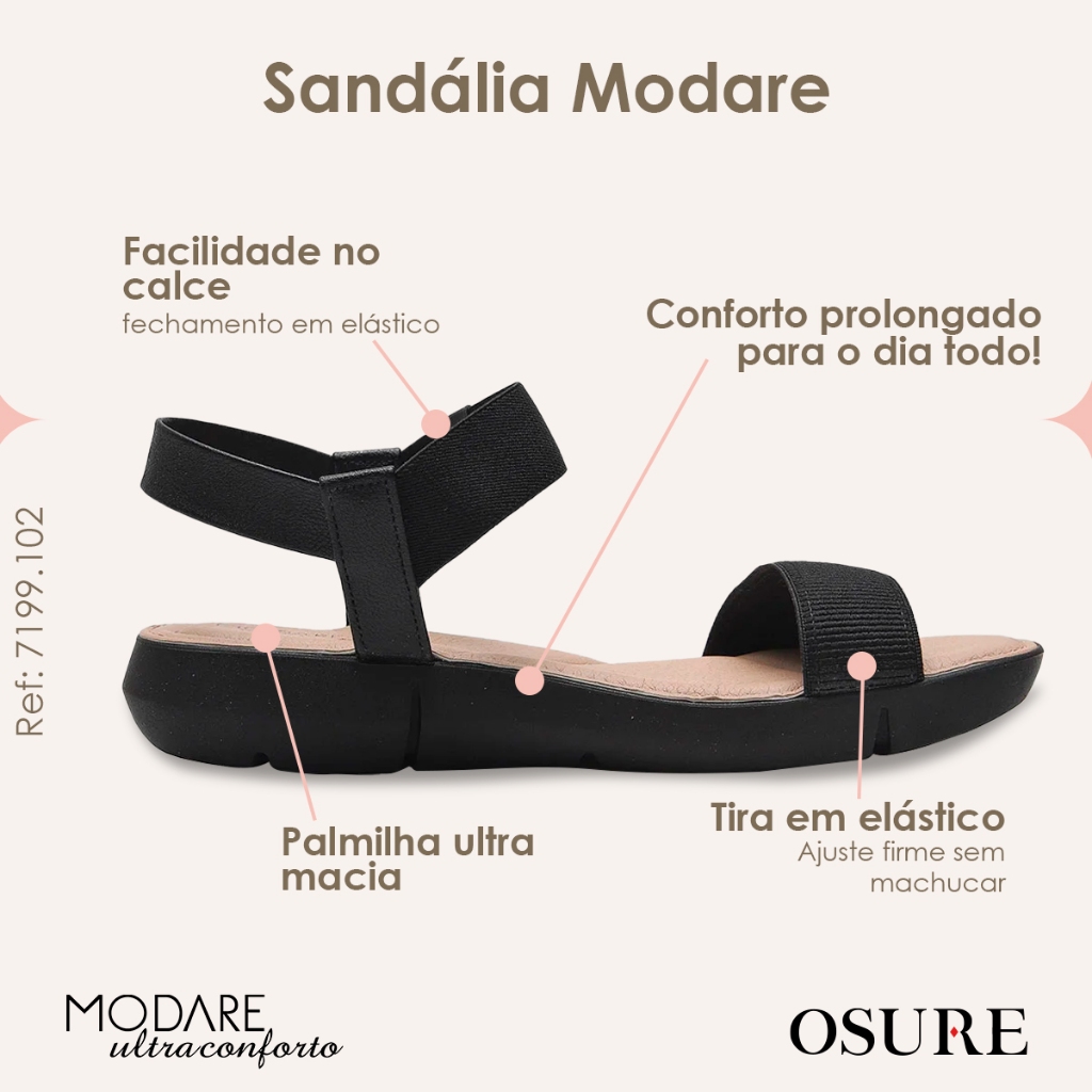 Sandália Modare Ortopédica UltraConforto Papete Feminina Palmilha Acolchoada Macia Amortecedor Esporão Fascite Plantar