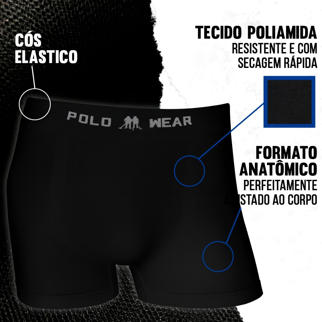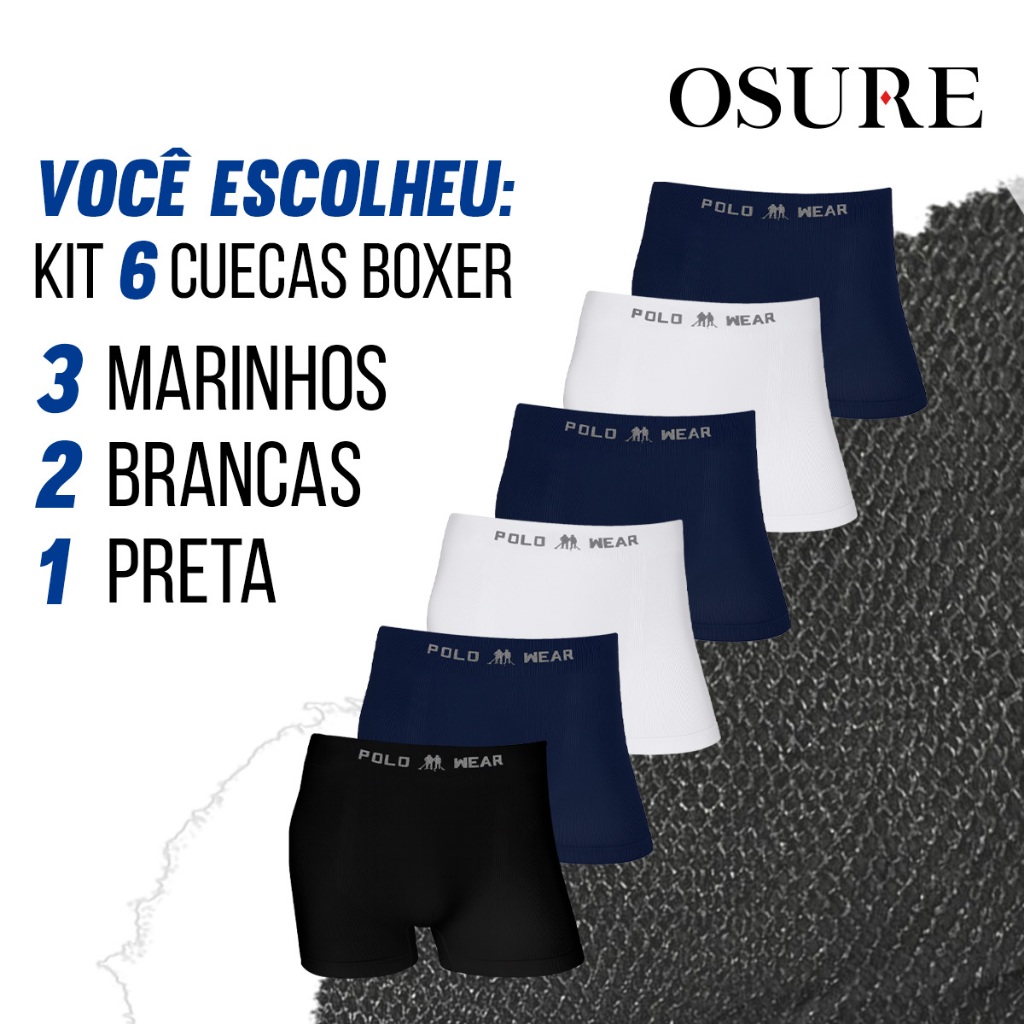 Kit 6 Cuecas Boxer Polo Wear Poliamida Sem Costura Masculina Elastano Premium Cueca Box Adulto Confortável Original