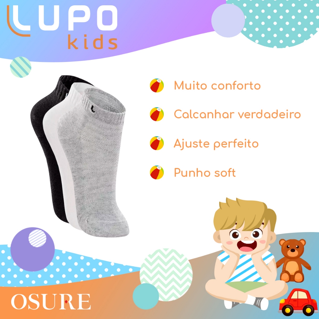 Kit 6 Pares De Meias Lupo Infantil Menino E Menina Original Confortável Criança Casual Resistente Reforçada Premium