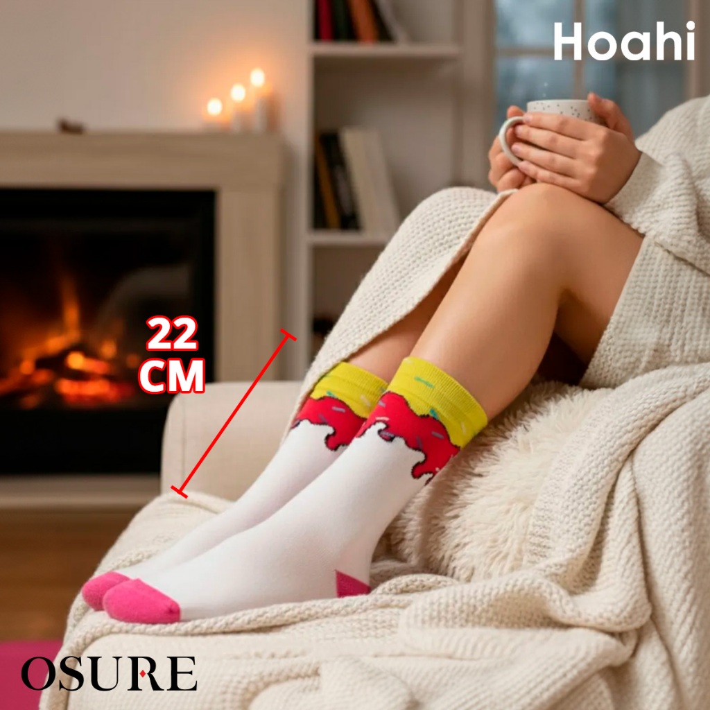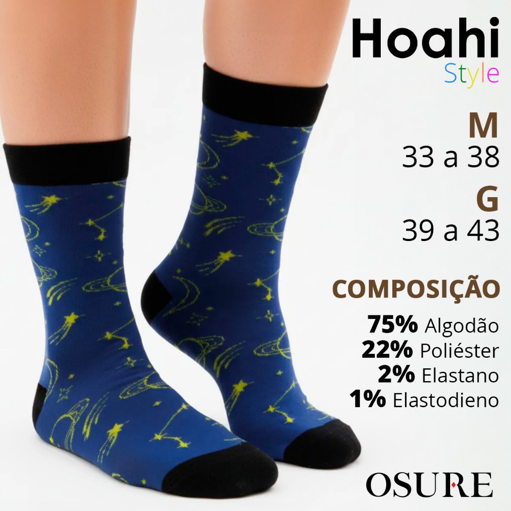 Kit Meias Hoahi Cano Alto Longo Algodão Estampadas Divertidas Coloridas Adulto Confortável Original