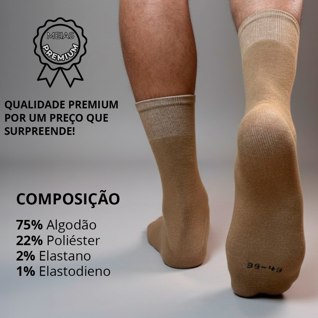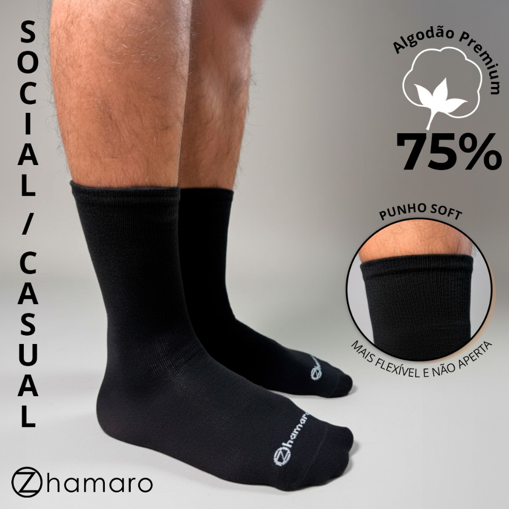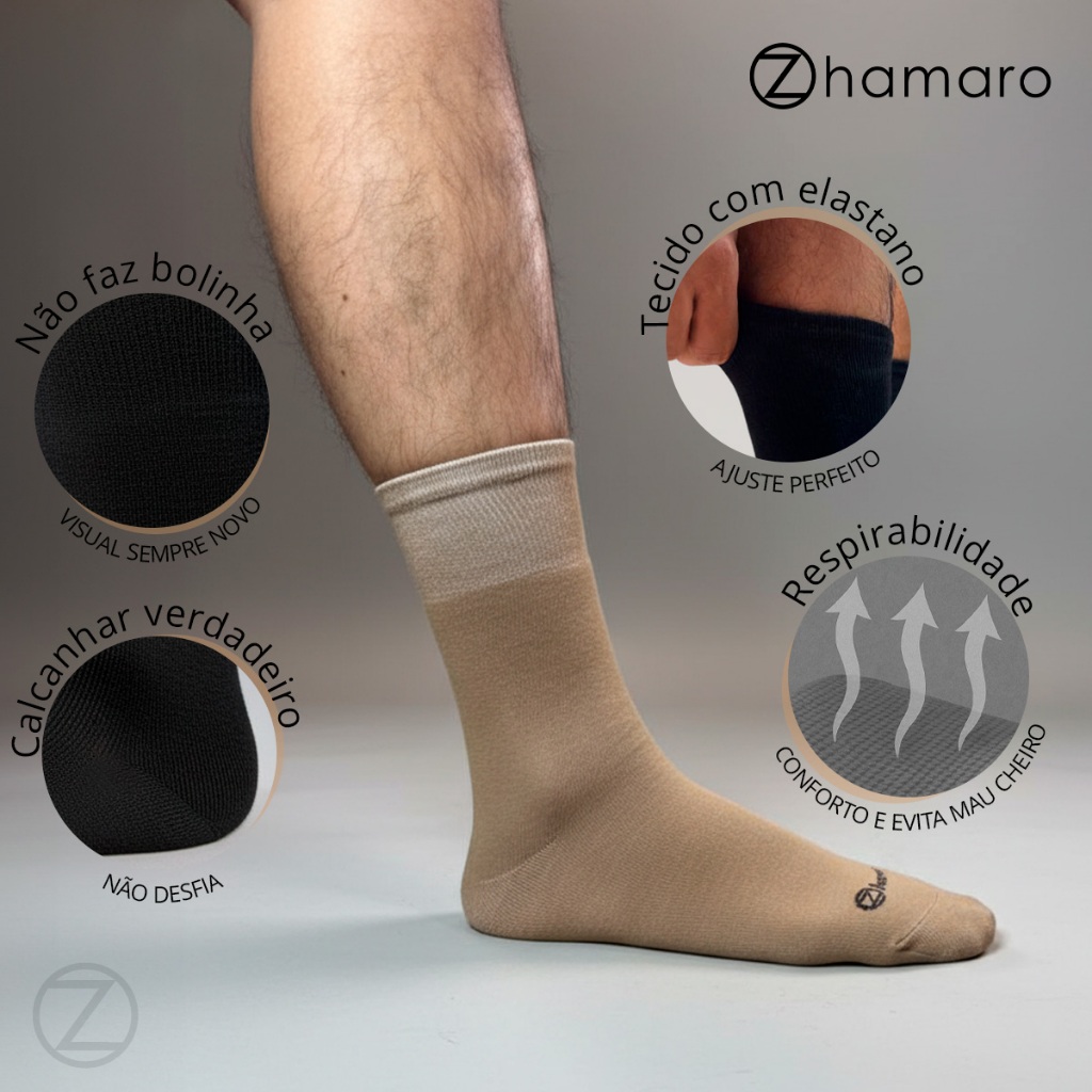 Kit 6 Pares Meias Zhamaro Premium Social Casual Algodão Cano Alto Confortável Clássica Elegante Masculina