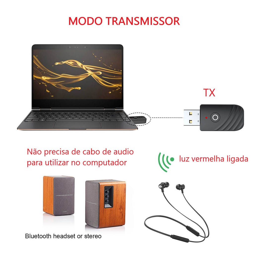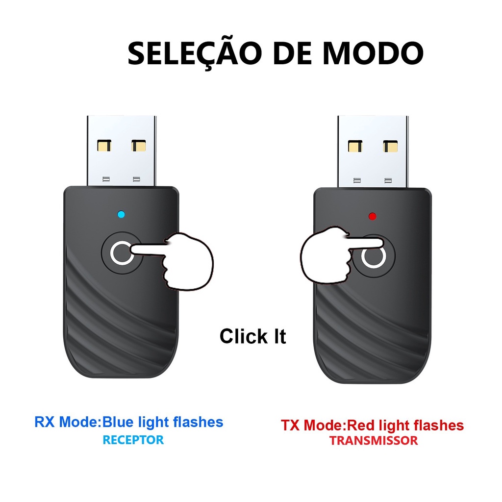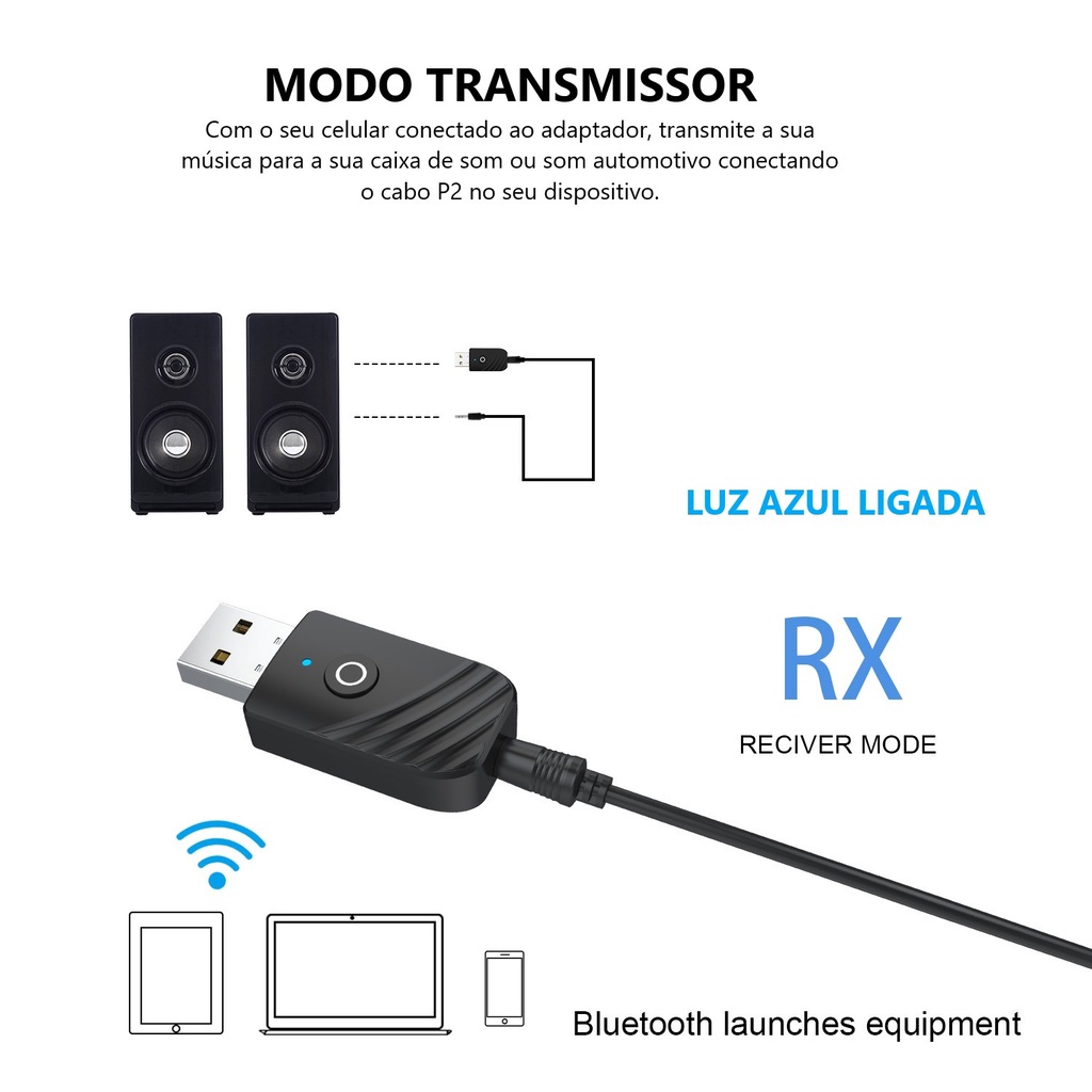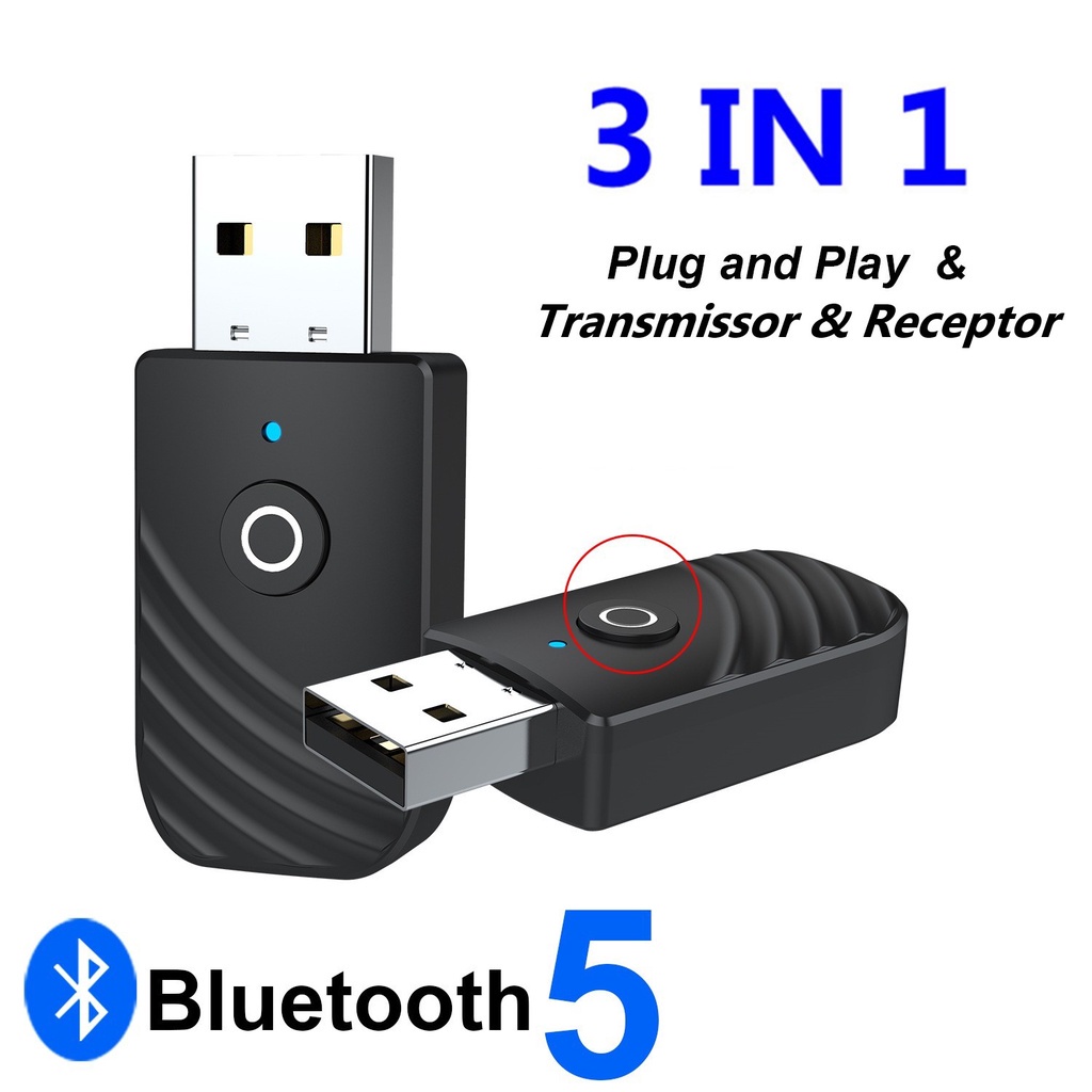 Adaptador 3em1 Usb Bluetooth 5.0 c/ Botão Receptor Transmissor Musica P2 Automotivo