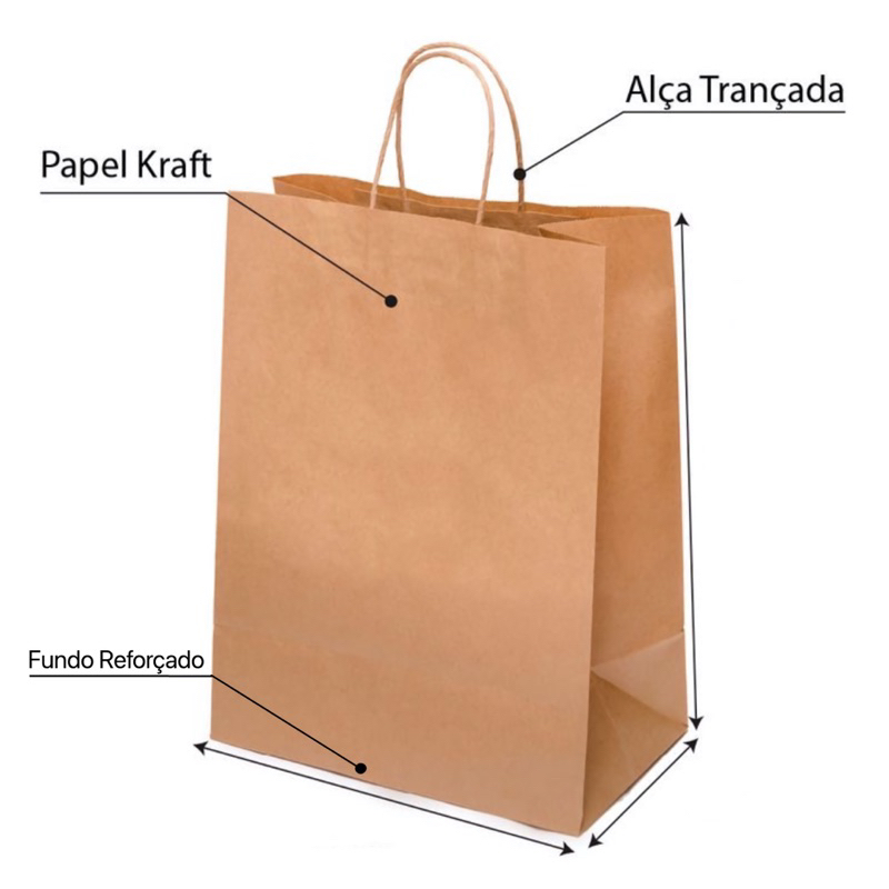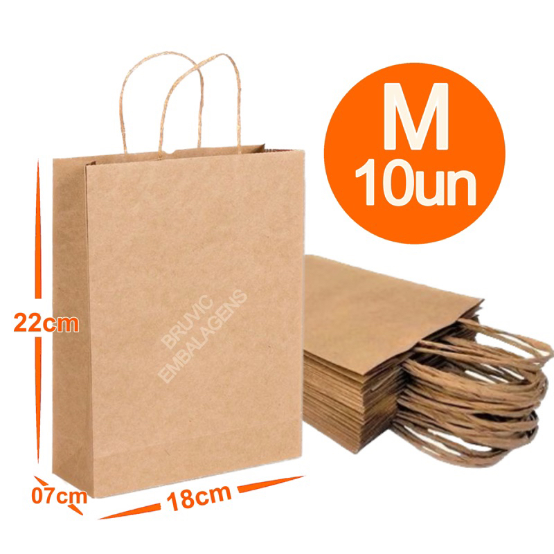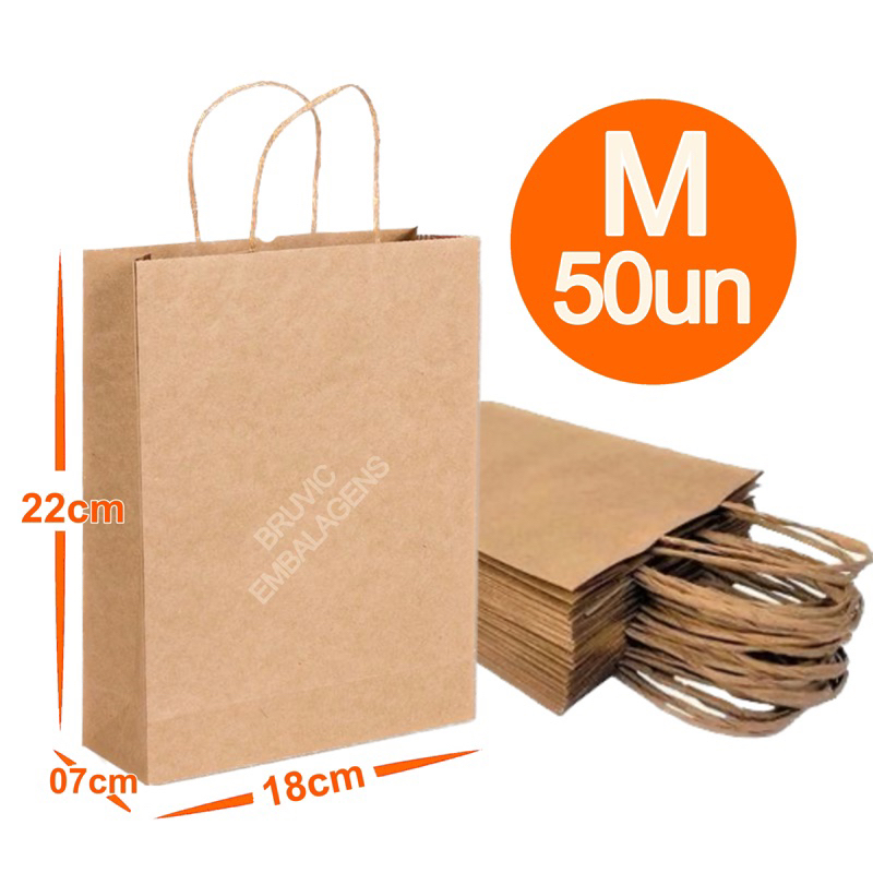 Sacola De Papel Kraft Natural com Alça PP/ P / M /G embalagem delivery festa aniversario presente lembrancinha