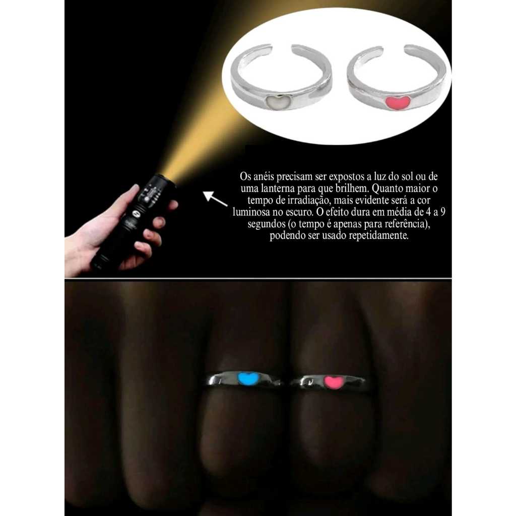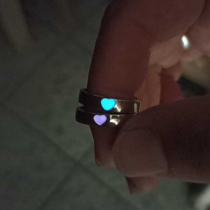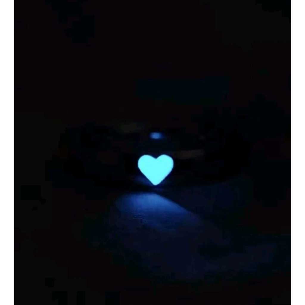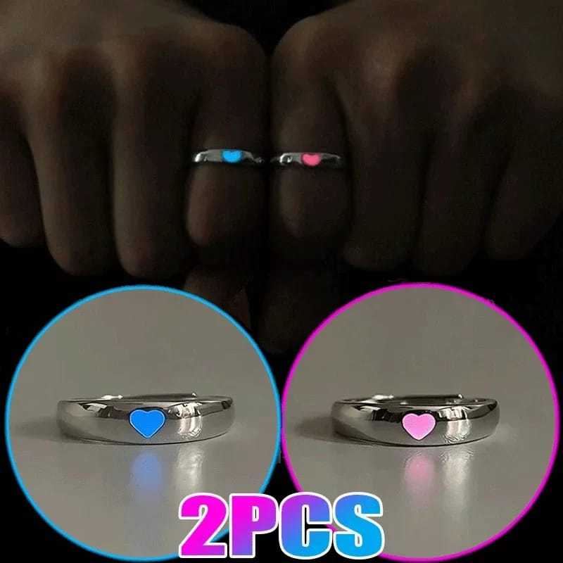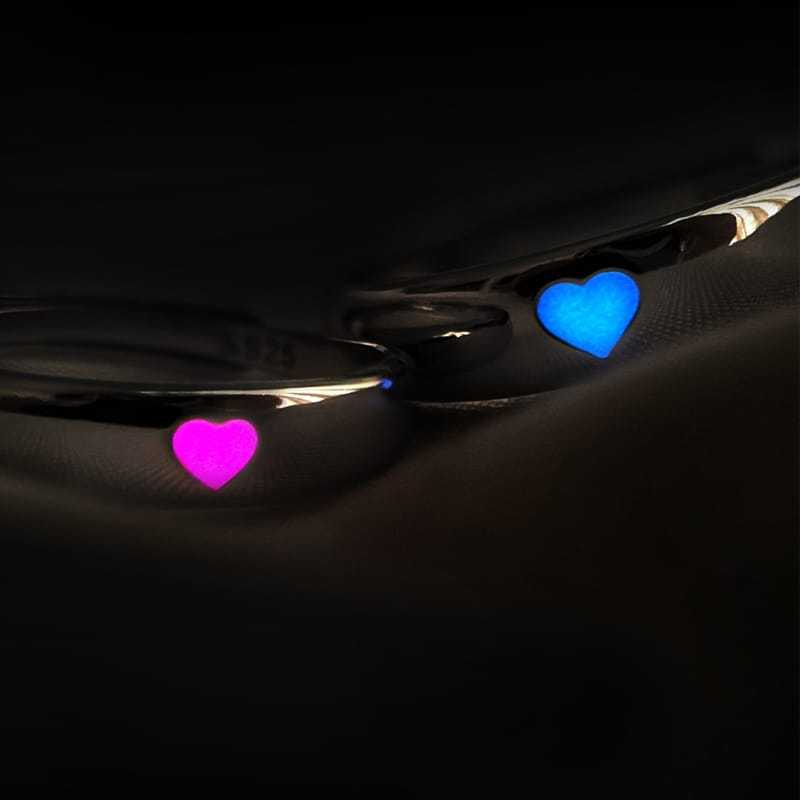 Par de Anéis Coração Brilha no Escuro Ajustável Neon Casal Anel Presente Delicado Fofo