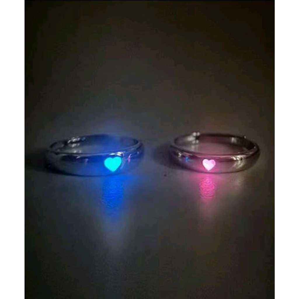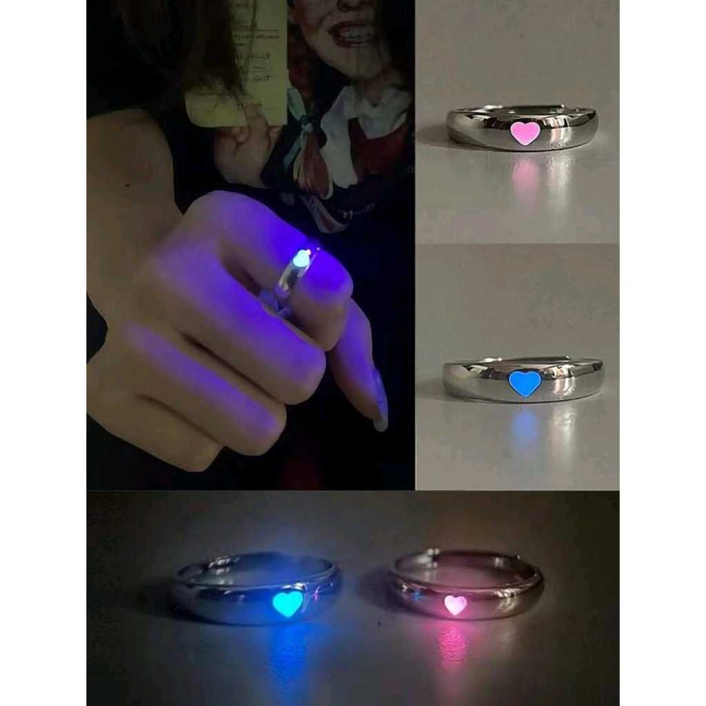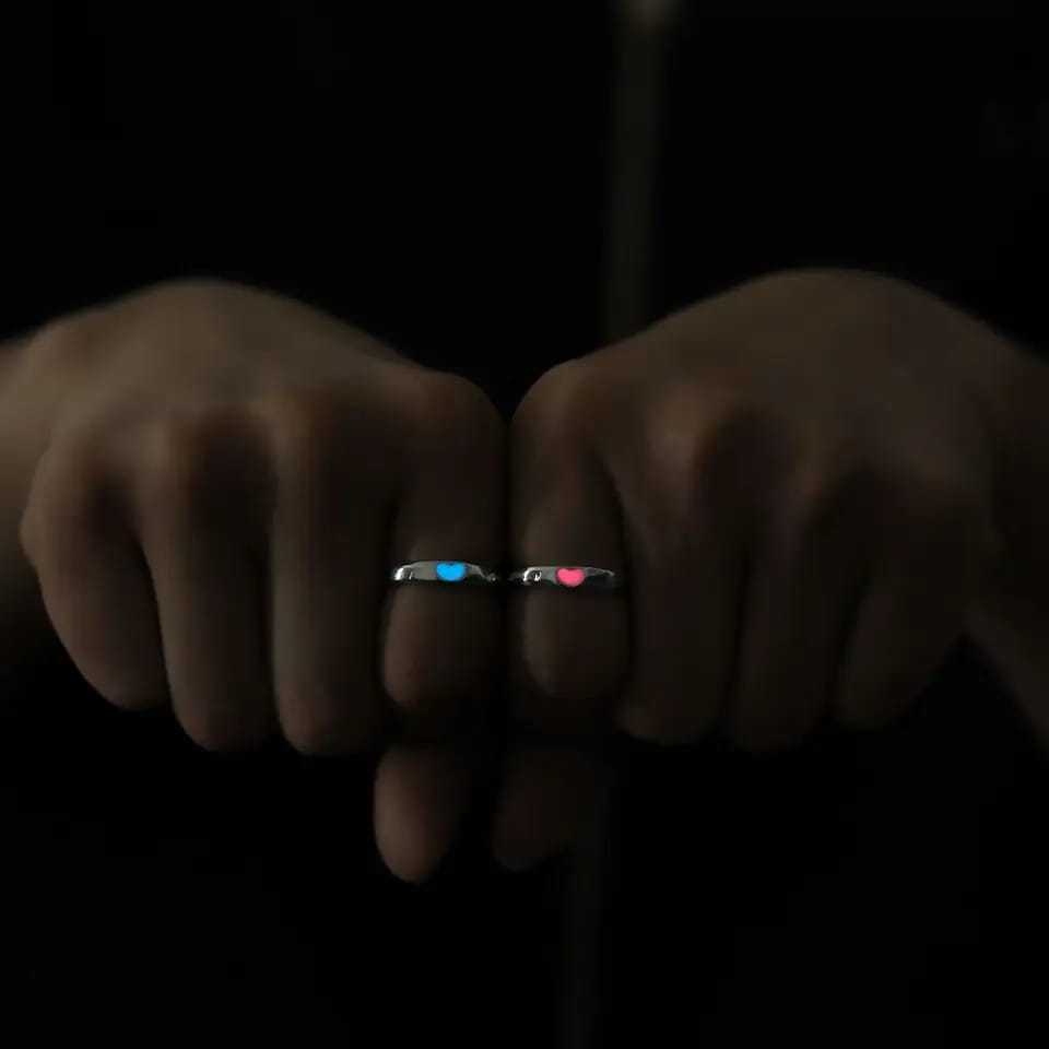 Par de Anéis Coração Brilha no Escuro Ajustável Neon Casal Anel Presente Delicado Fofo