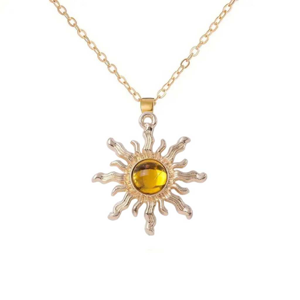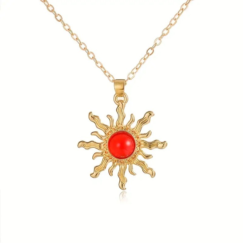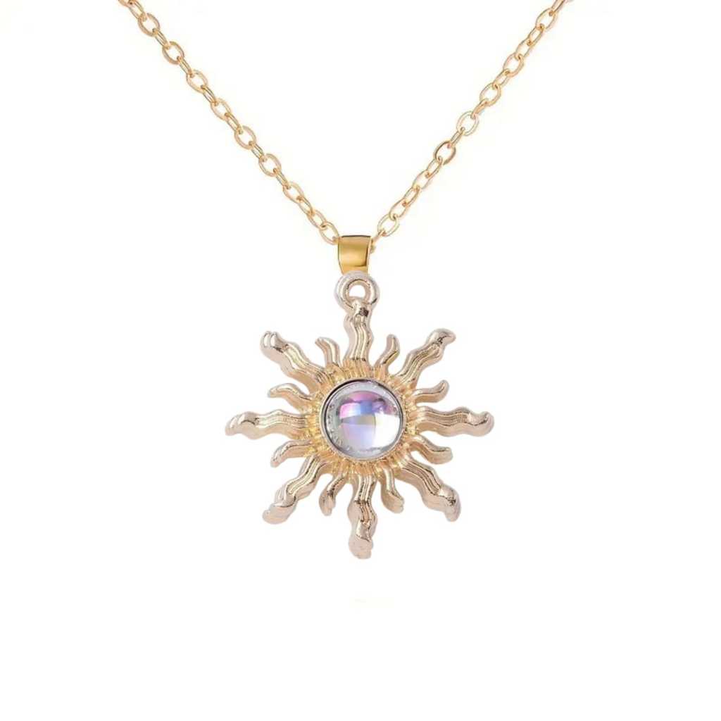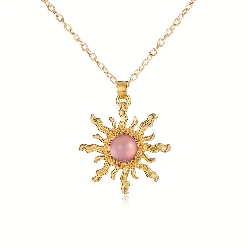 Colar Sol Raio Solar + Caixinha Rosa Para Presente Corrente Dourada Aço Inoxidável Presente