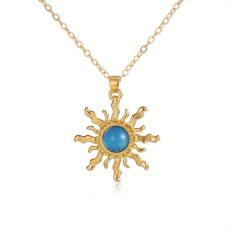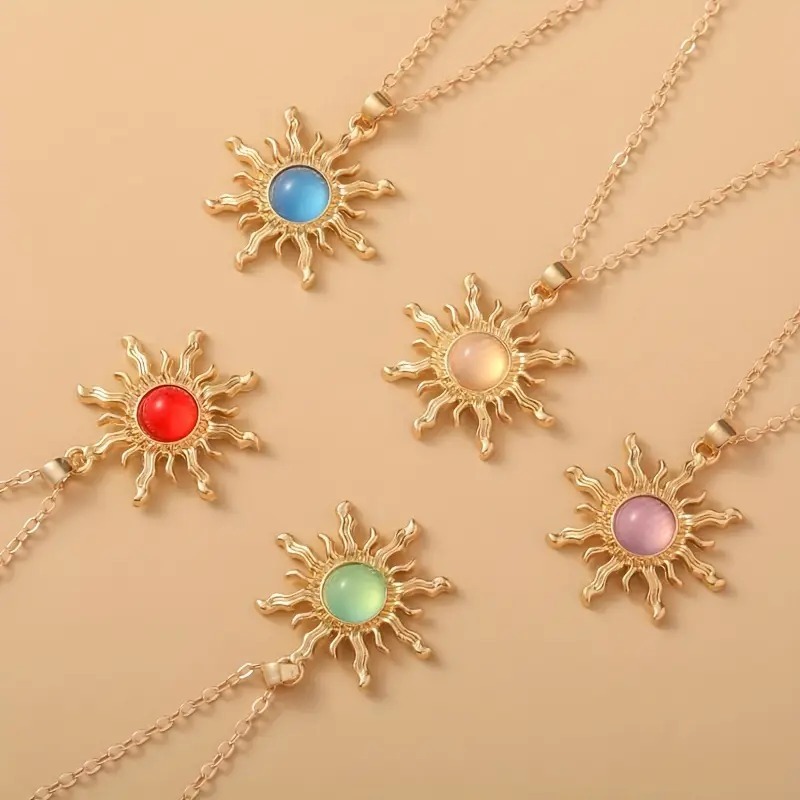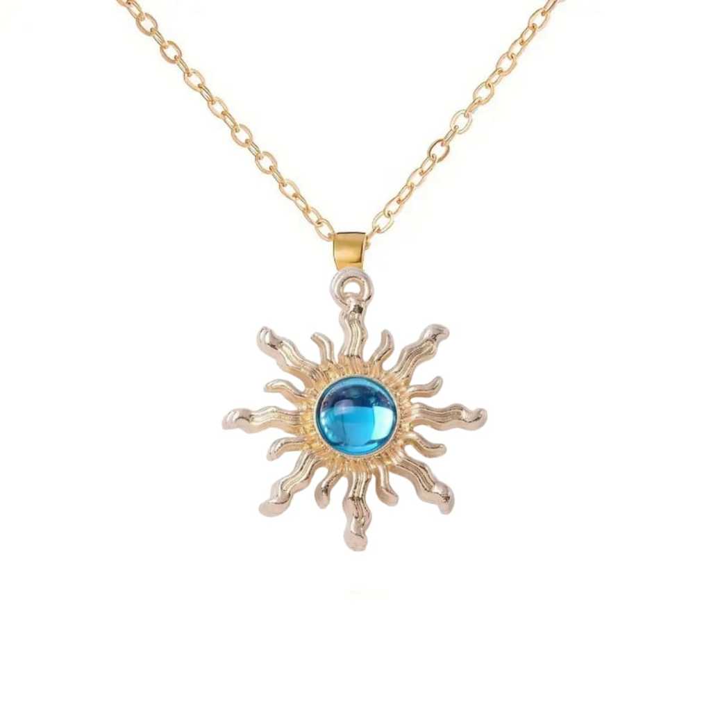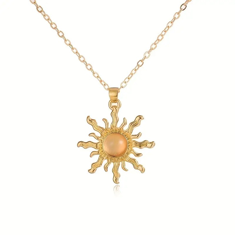 Colar Sol Raio Solar + Caixinha Rosa Para Presente Corrente Dourada Aço Inoxidável Presente