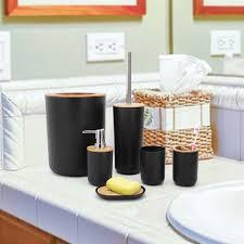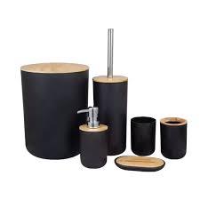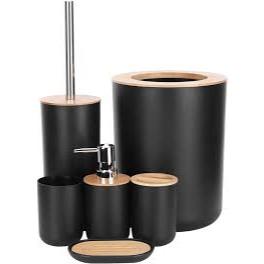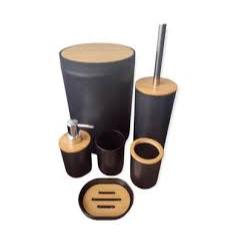 Kit Conjunto Banheiro 6 Peças Bambu Lixeira Porta Sabão Saboneteira Novi Casa