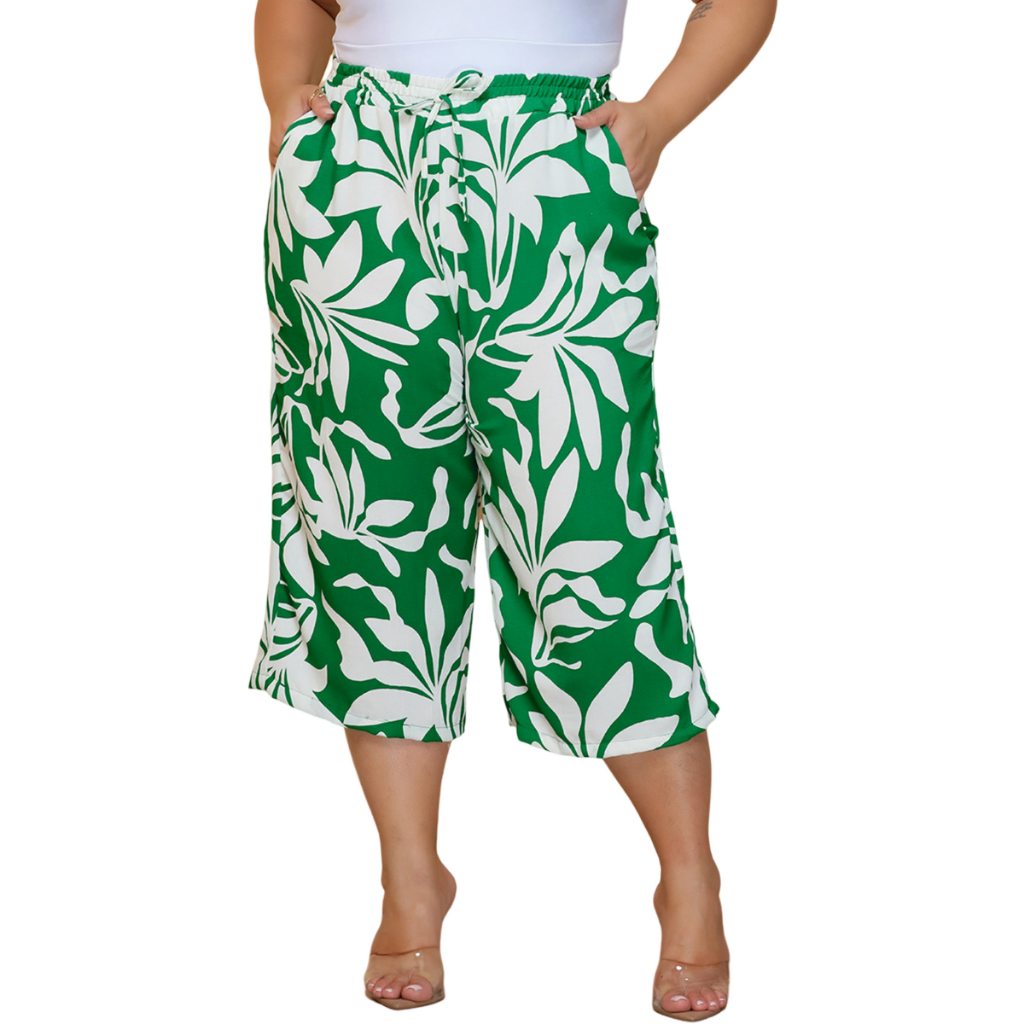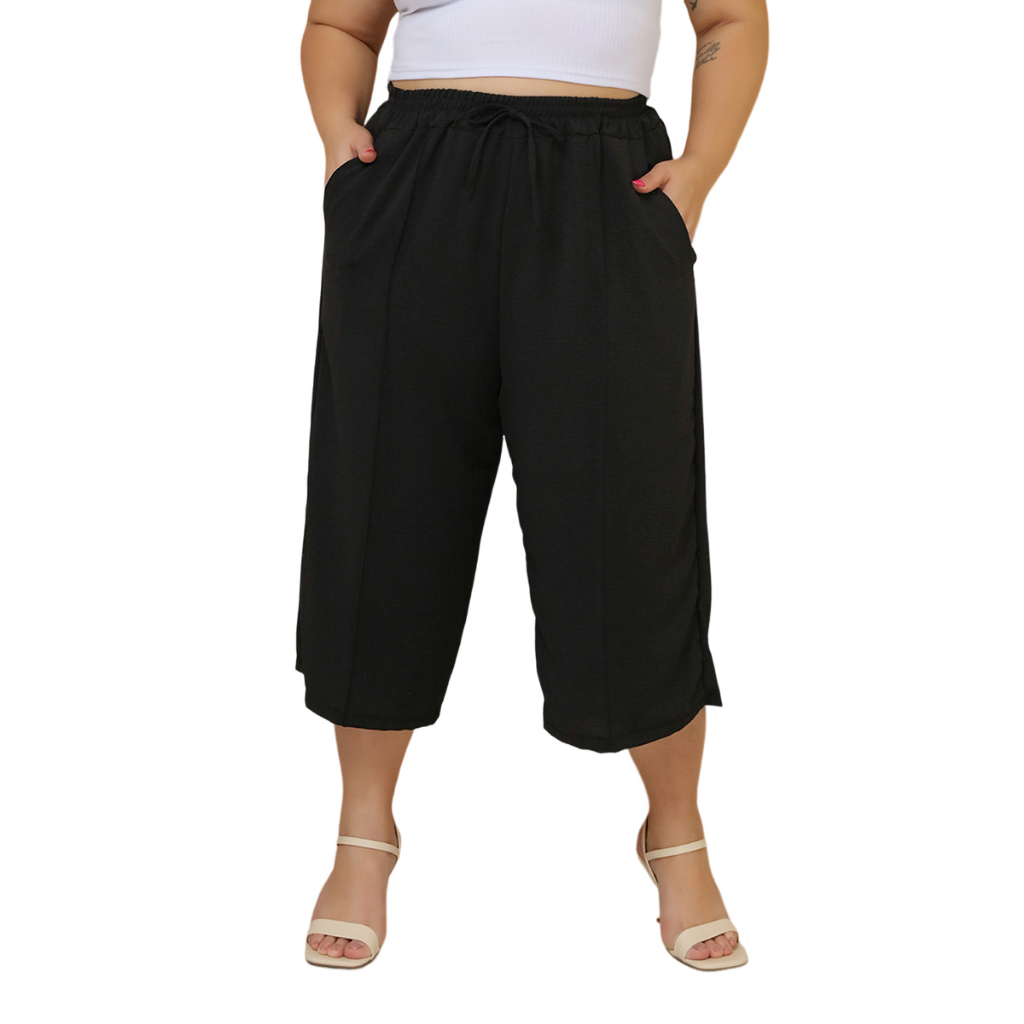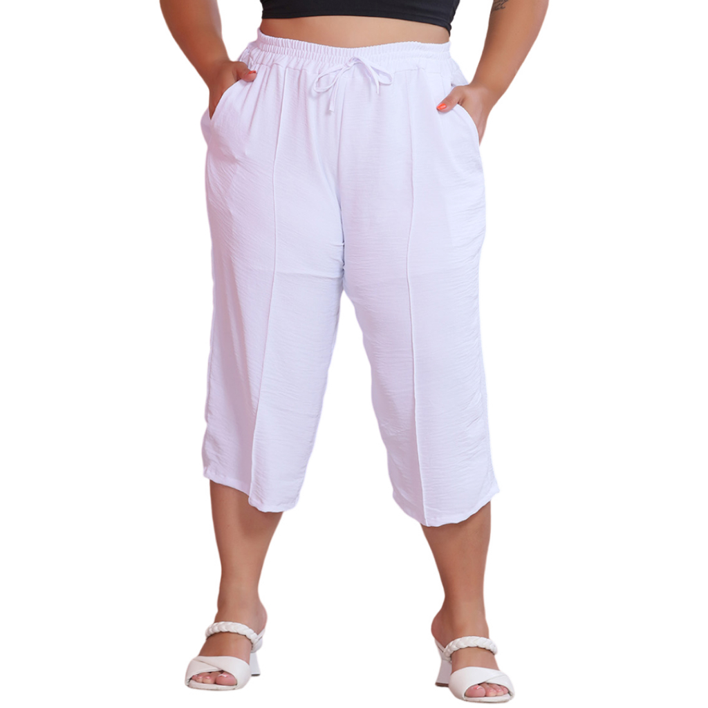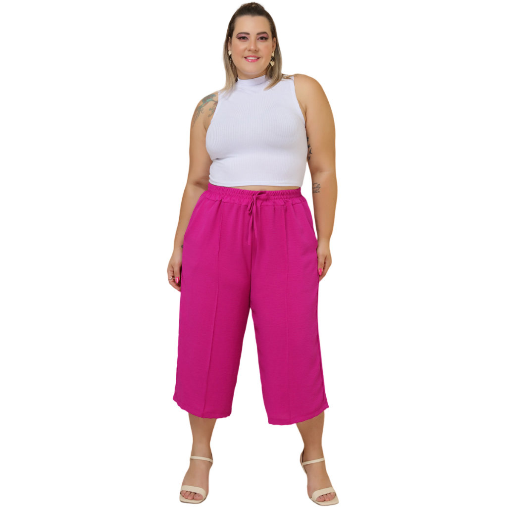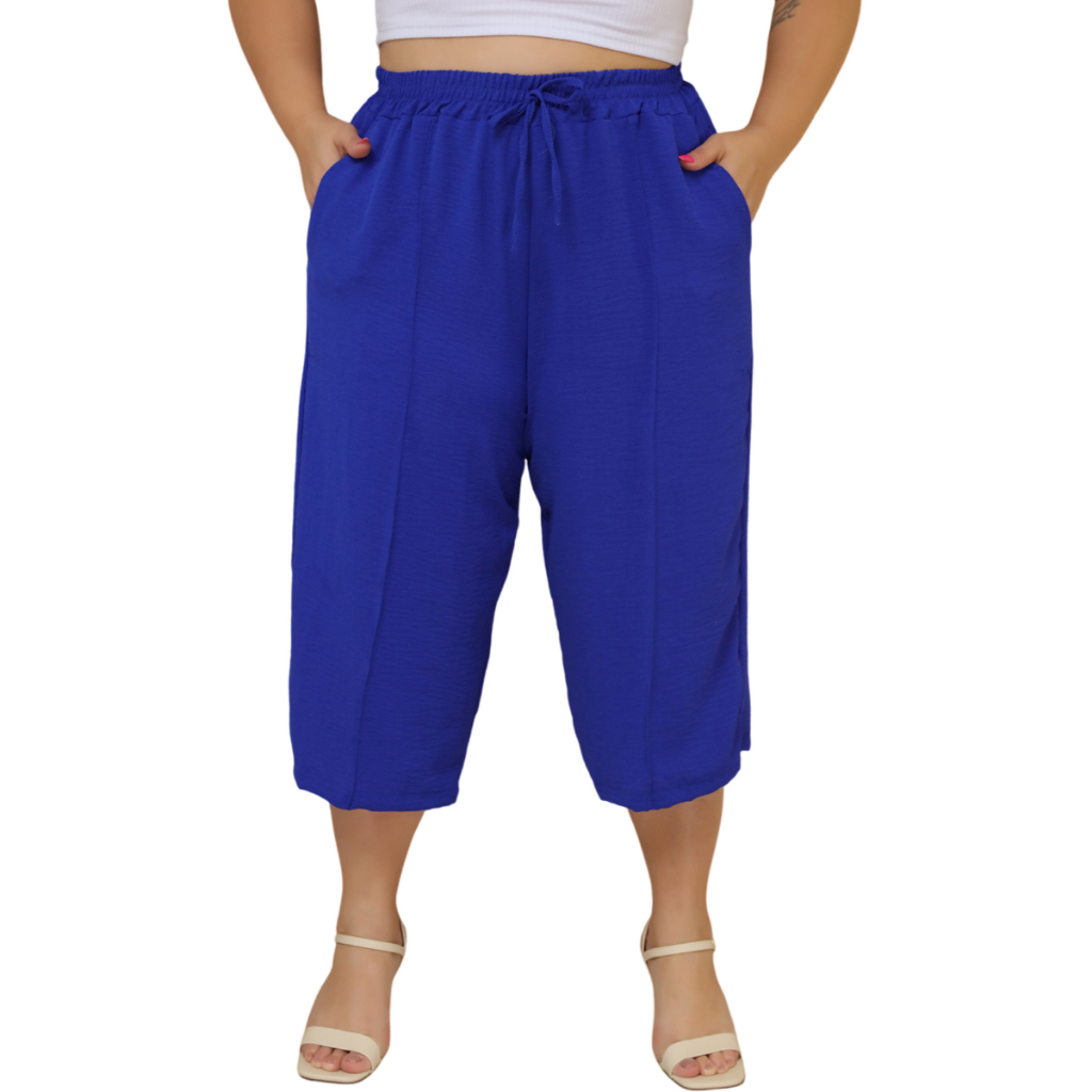 Calça Feminina Pantacourt Plus Size Cintura Com Elastica e Bolsos Confortável