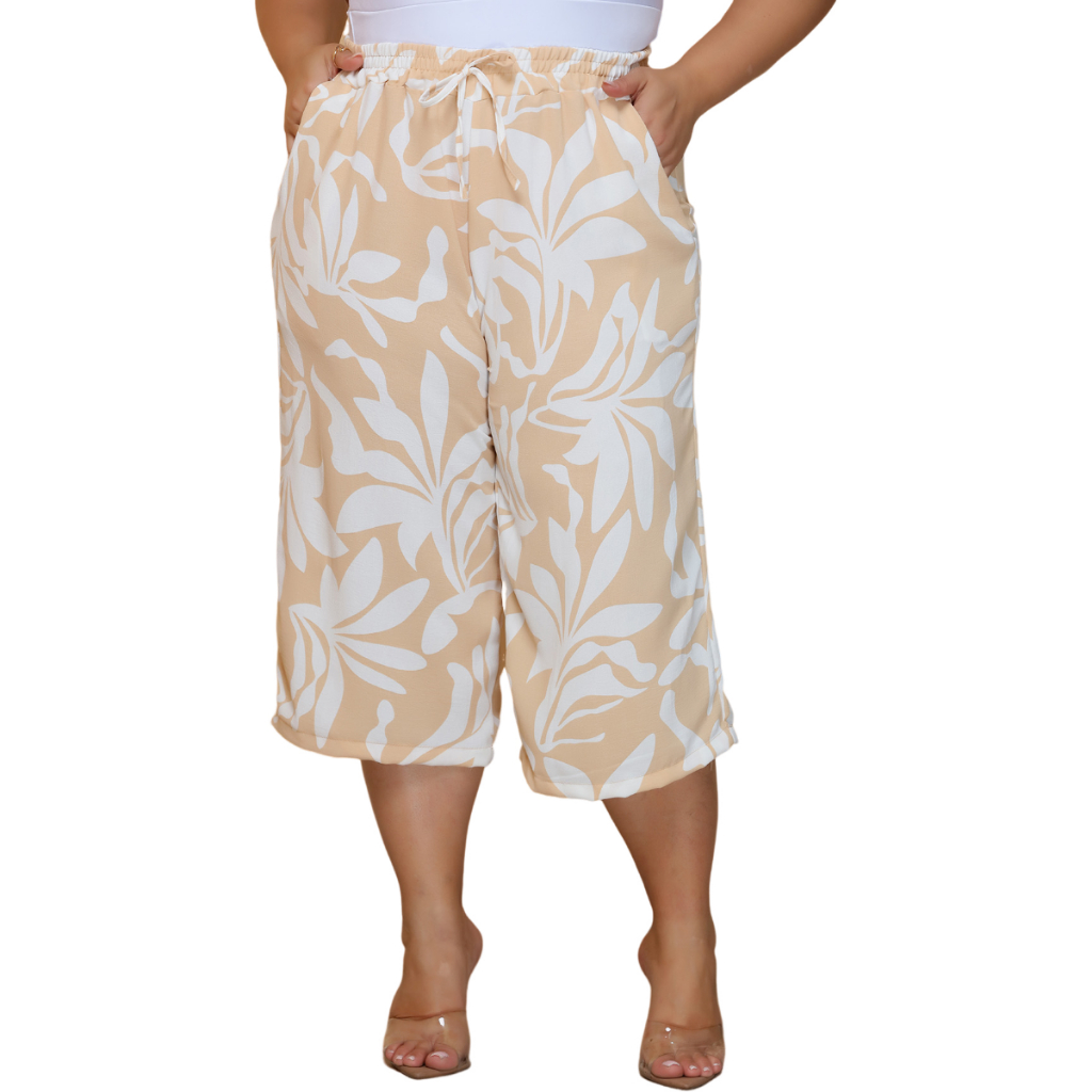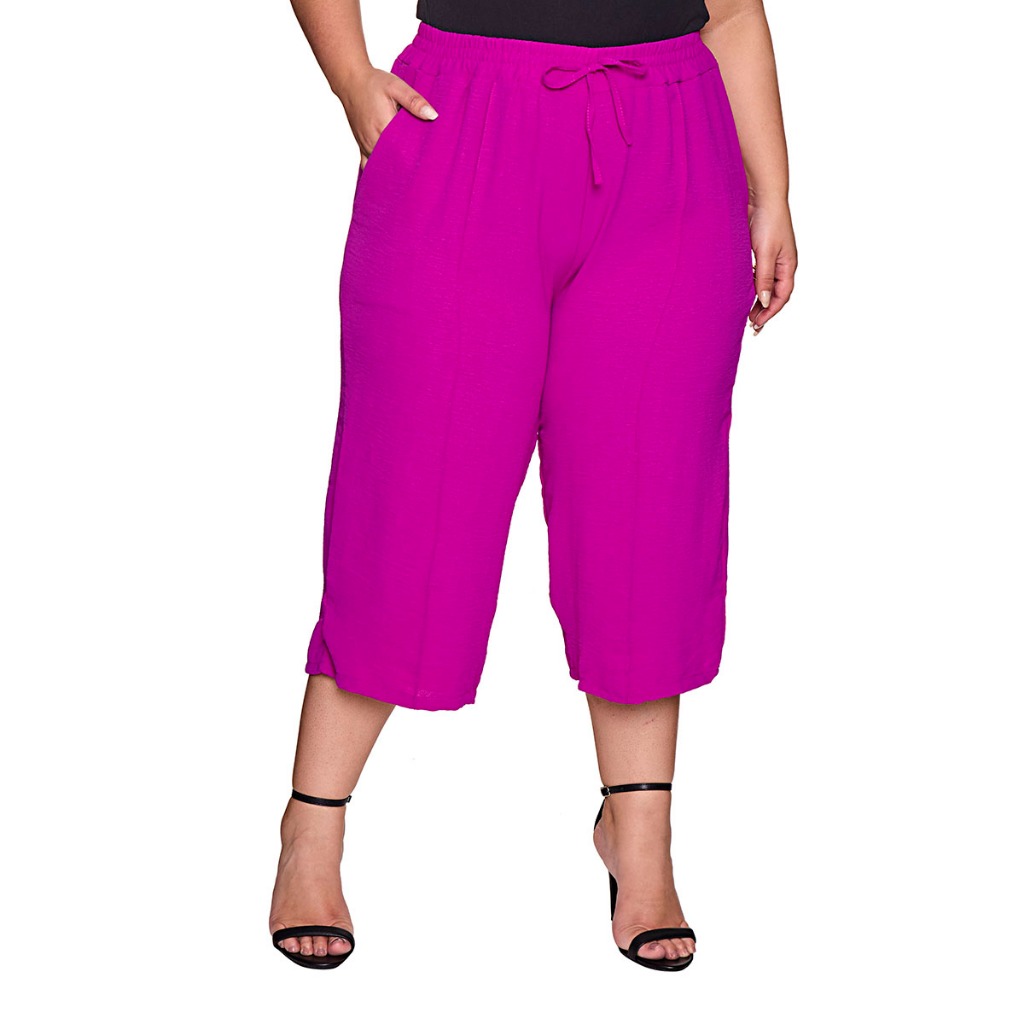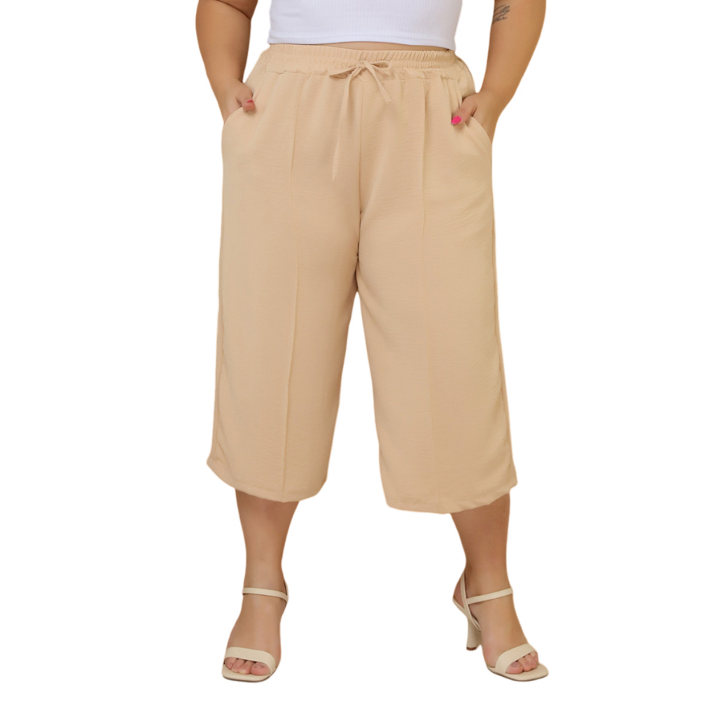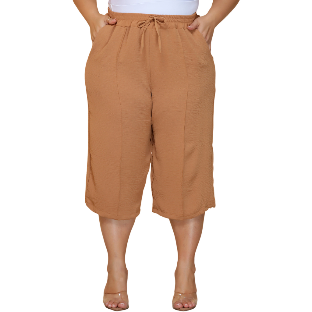 Calça Feminina Pantacourt Plus Size Cintura Com Elastica e Bolsos Confortável
