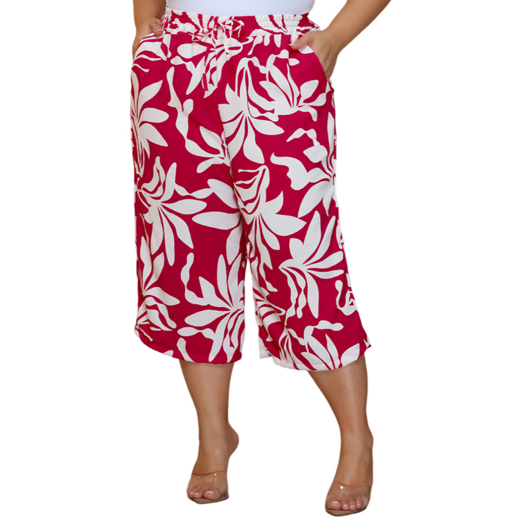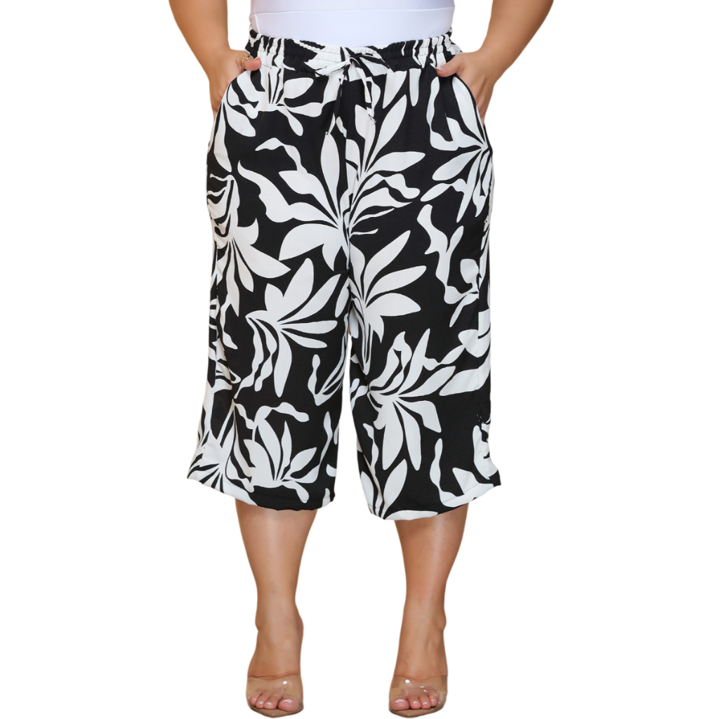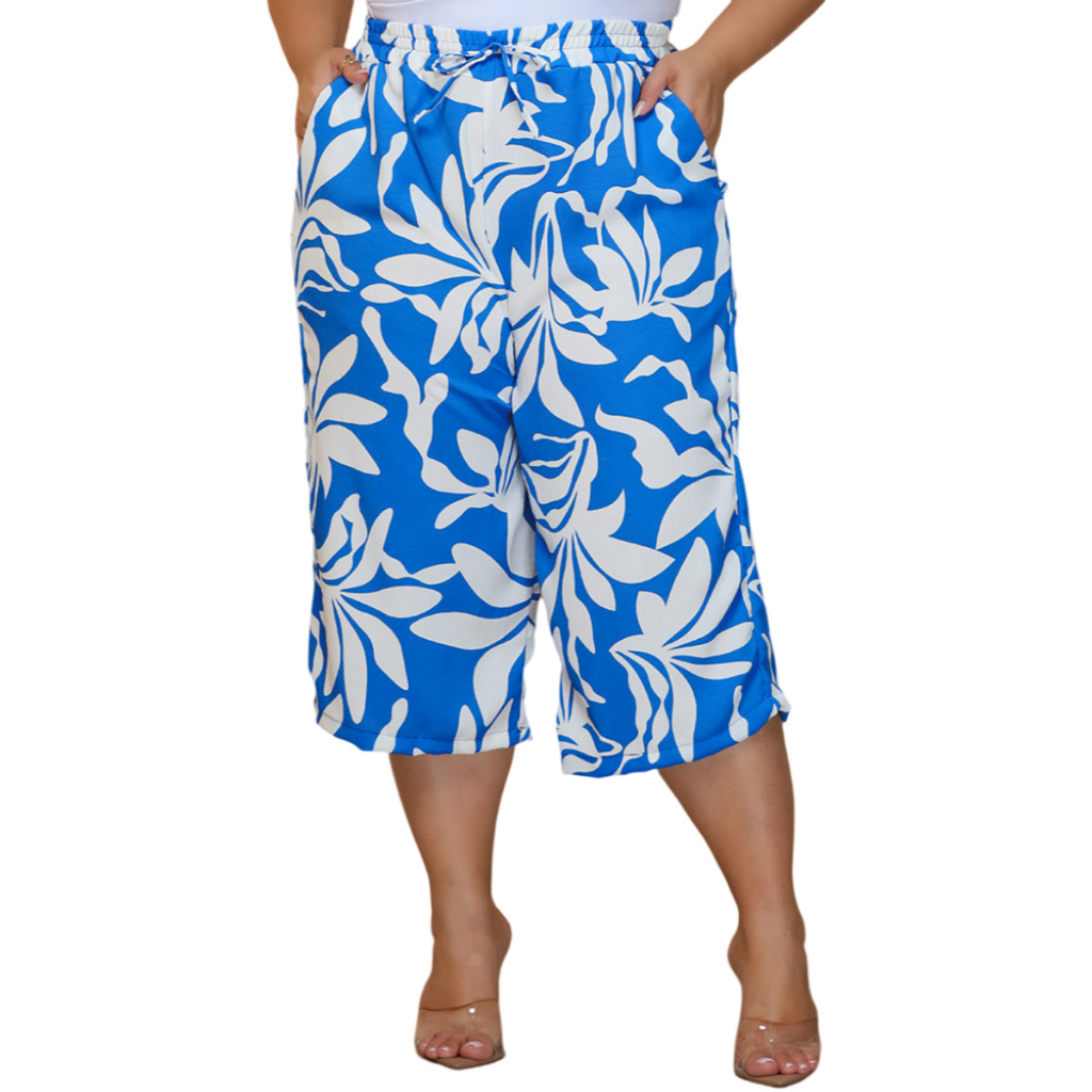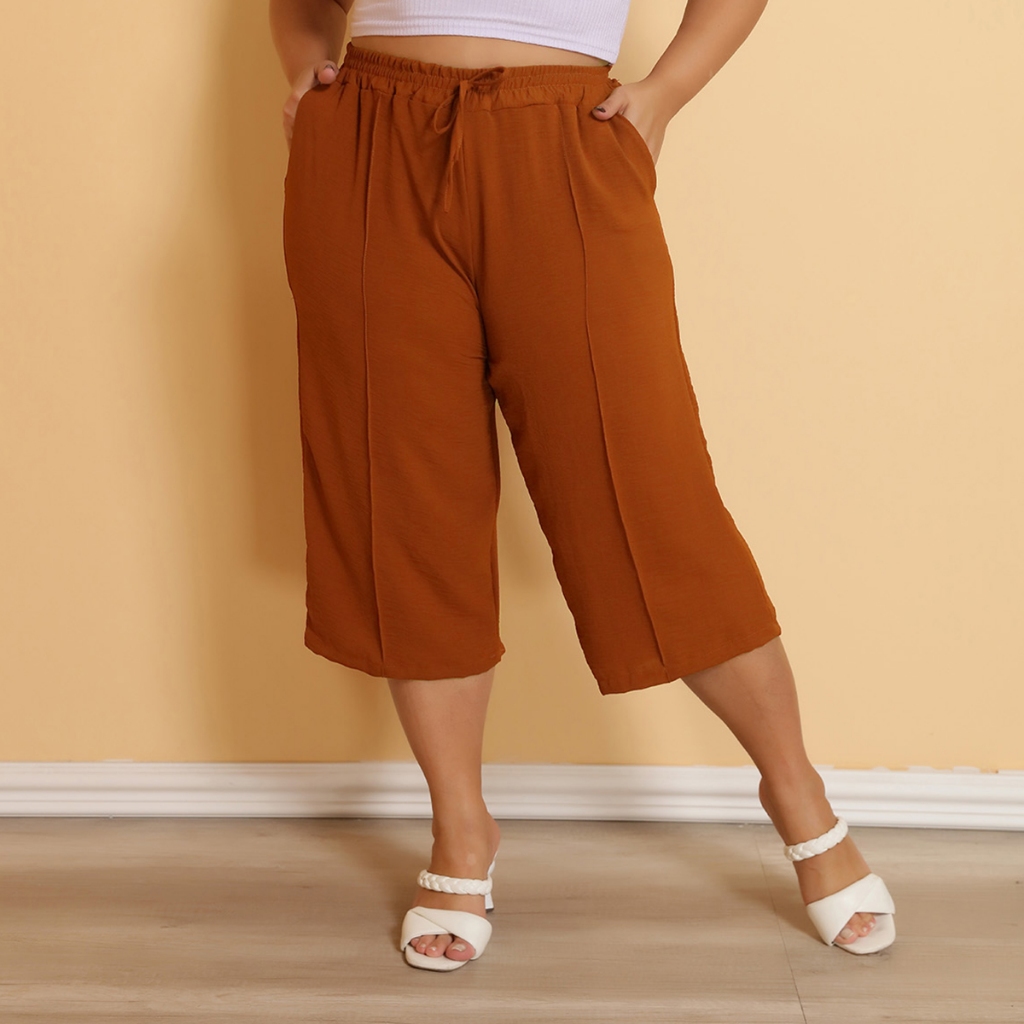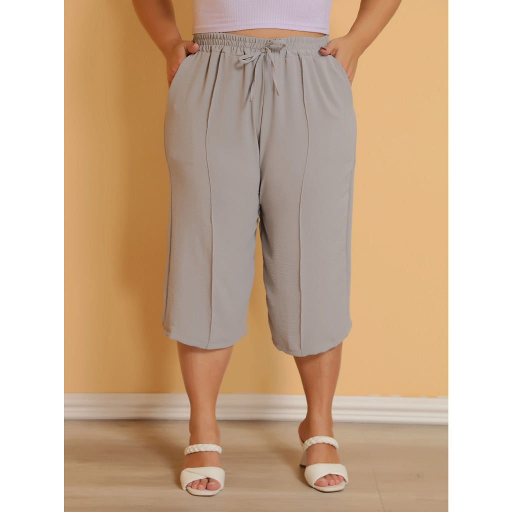 Calça Feminina Pantacourt Plus Size Cintura Com Elastica e Bolsos Confortável