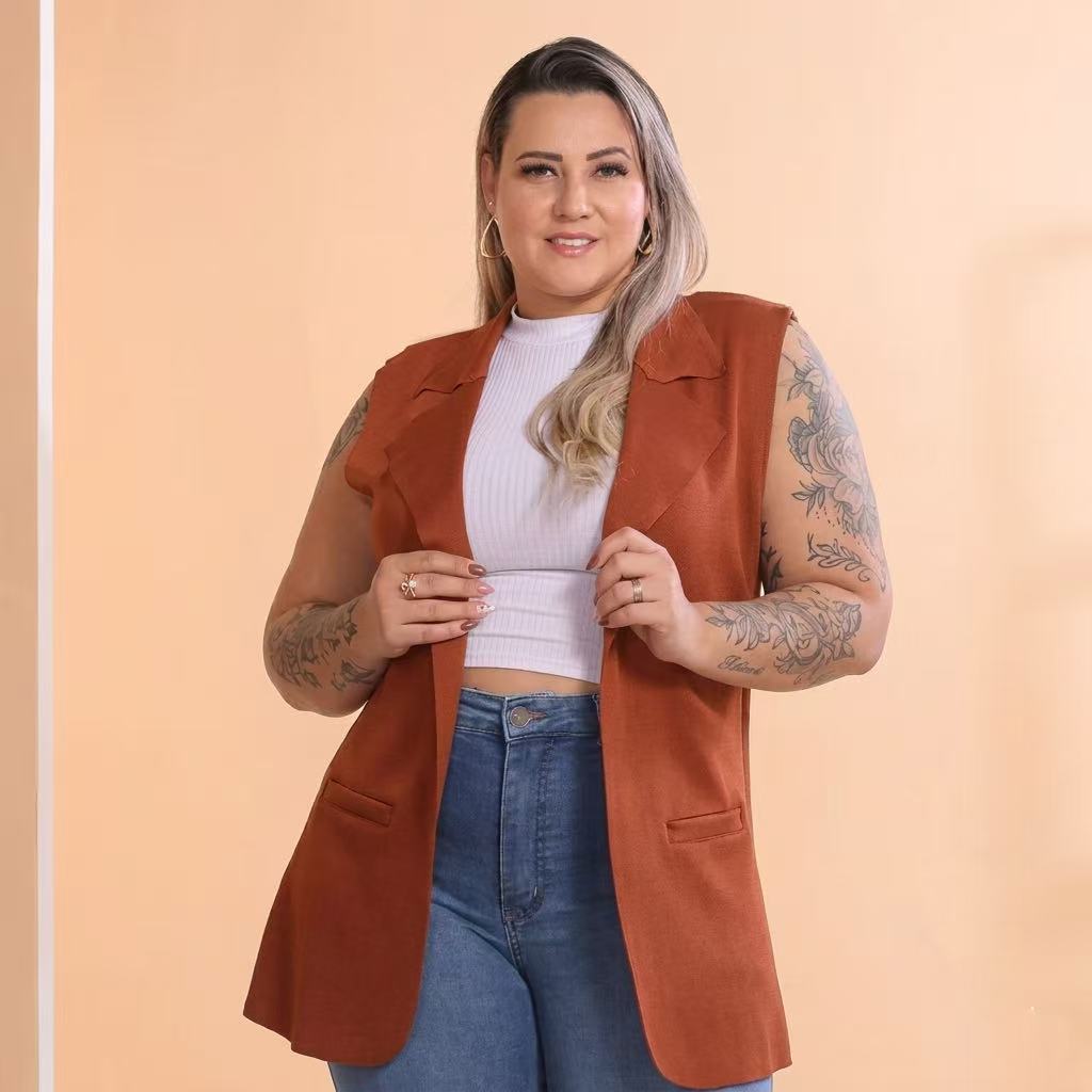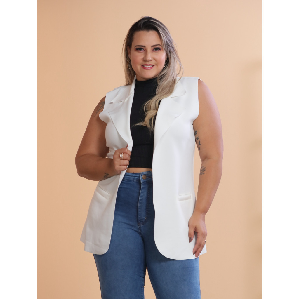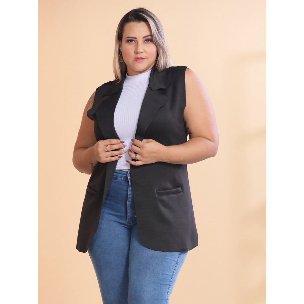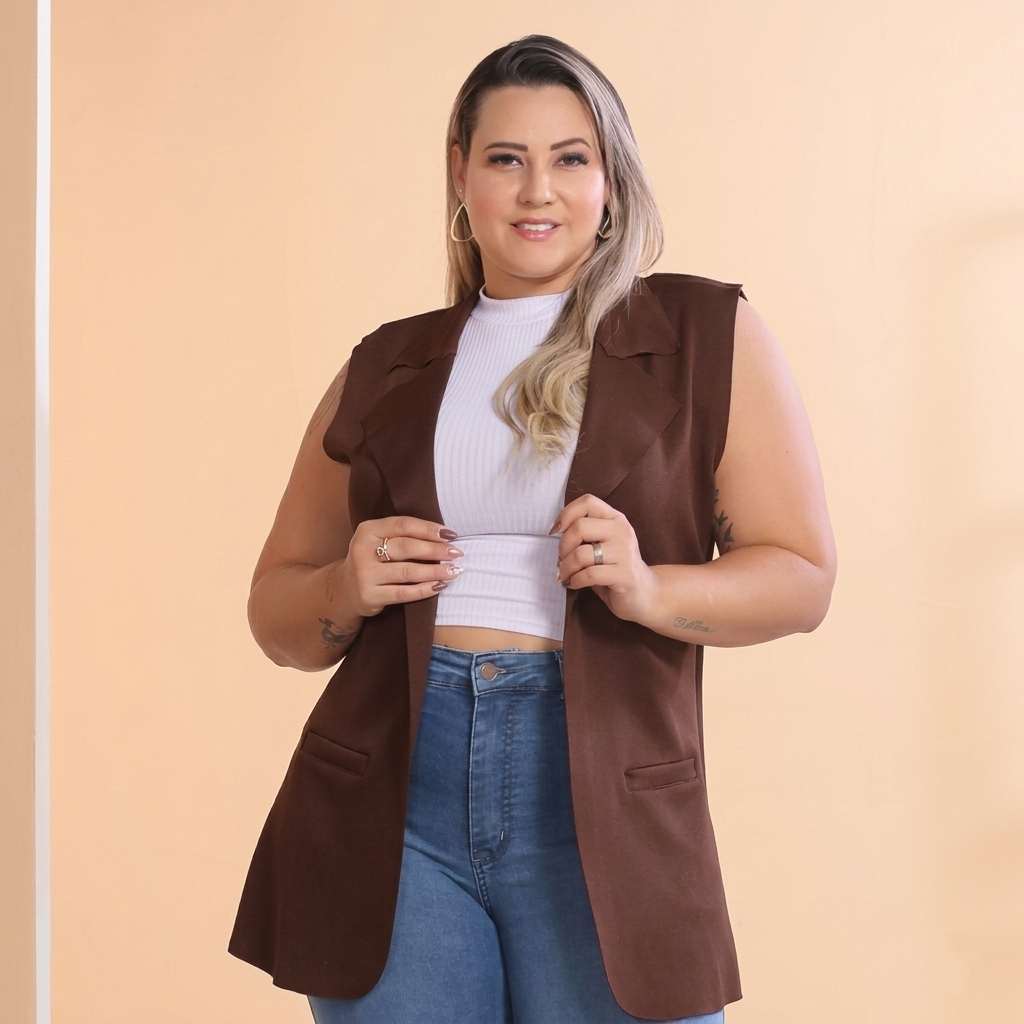 Max Colete Plus Size Feminino Longo Aberto De Neoprene Inverno e Outono