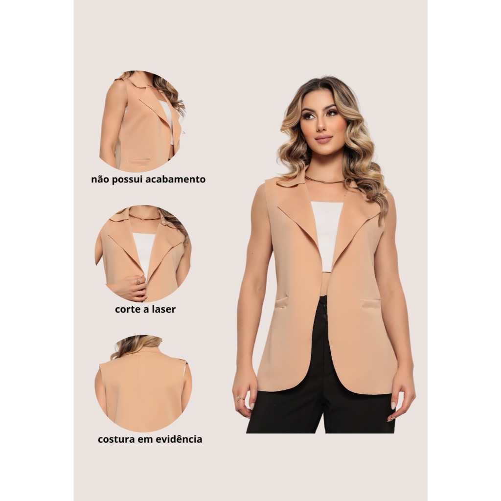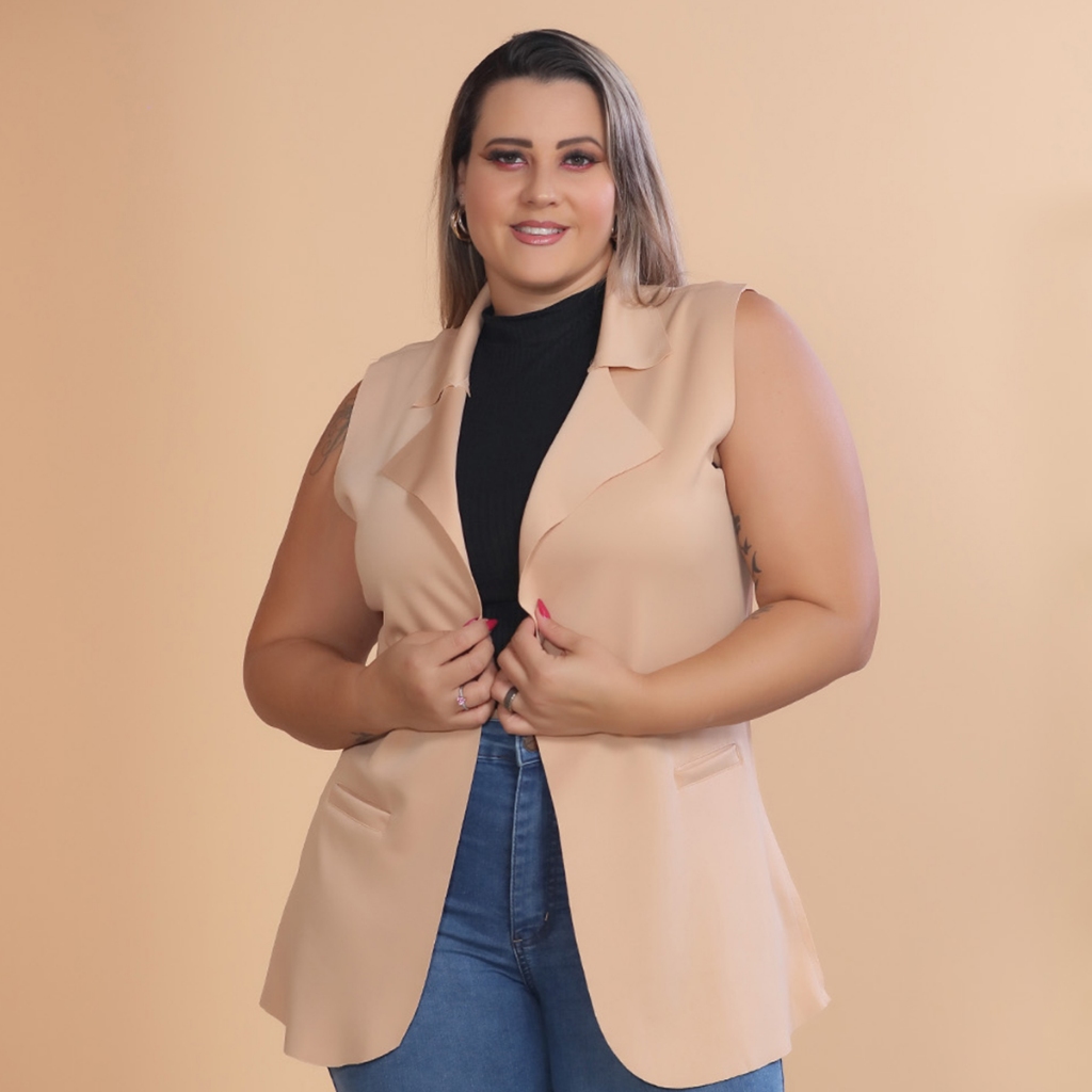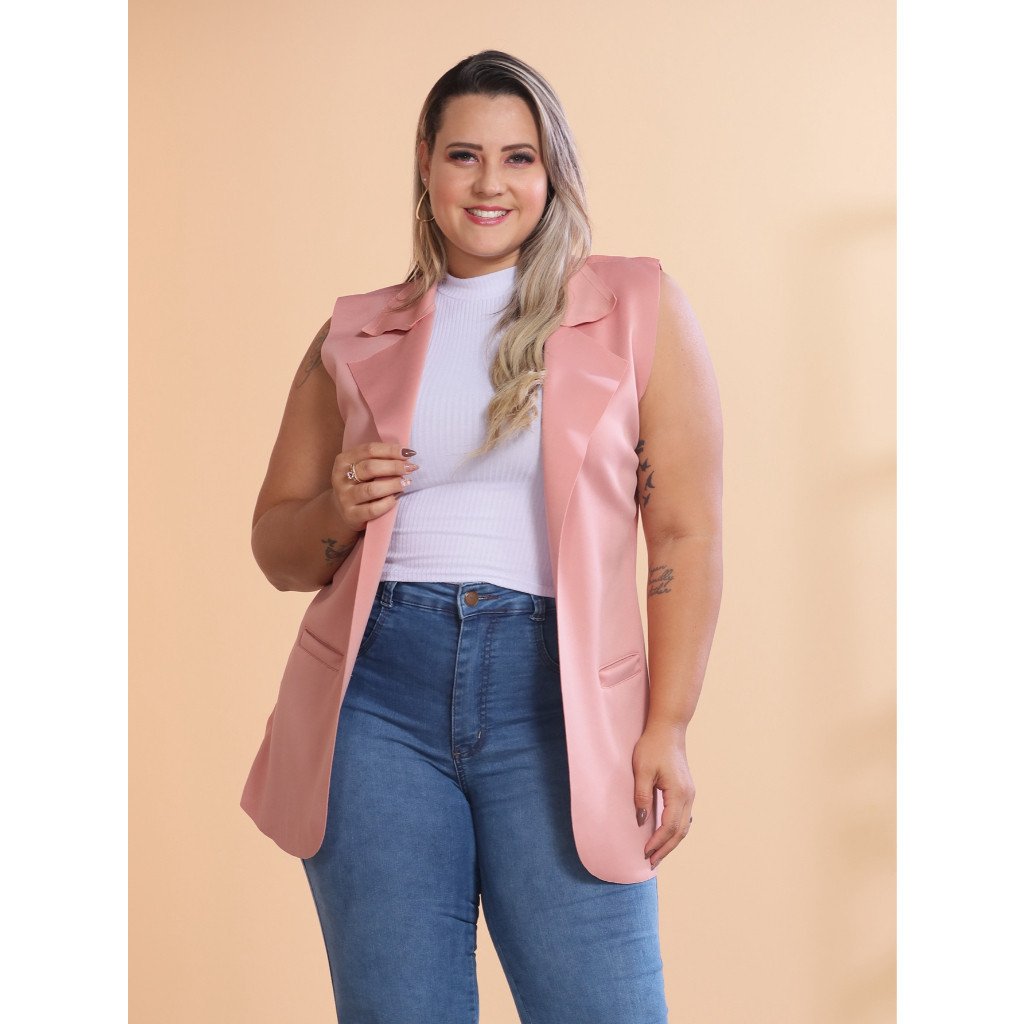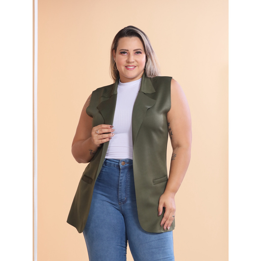 Max Colete Plus Size Feminino Longo Aberto De Neoprene Inverno e Outono