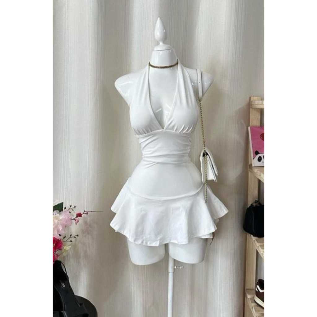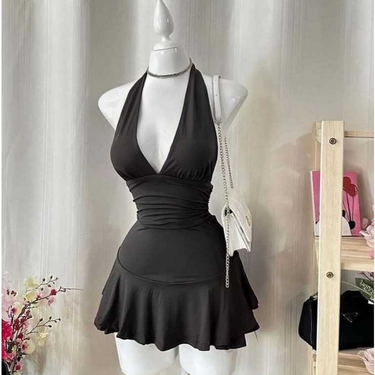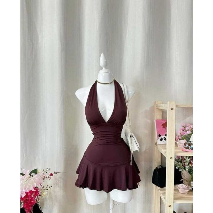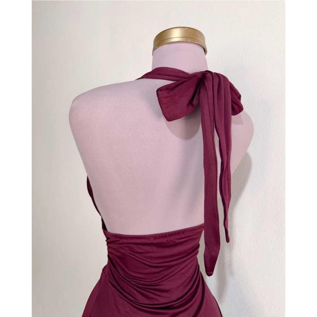 Vestido Com Babado Costa Nua e Amarrável Suplex ( Miza )