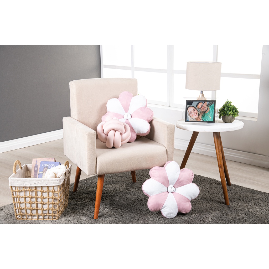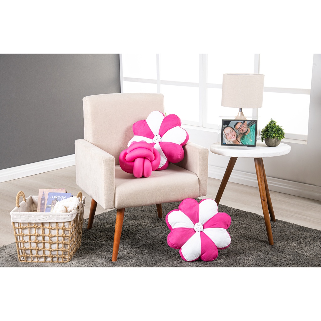 Kit 02 Almofadas De Flor + 1 Nó Luxo Rosa Bebe Decorativas