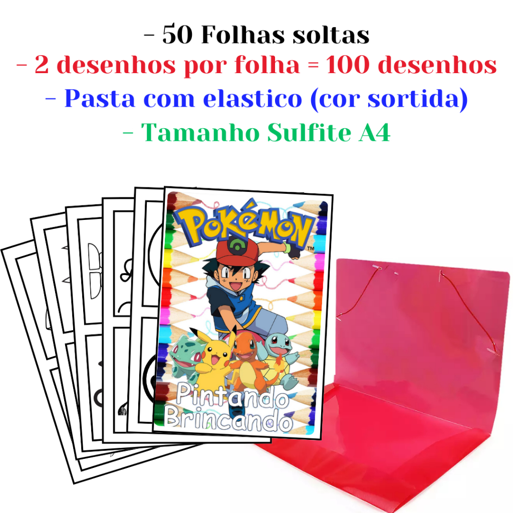 100 Desenhos Para Colorir e Pintar - Tema Pokemon - Folhas A4 Sulfite Avulsas/Soltas