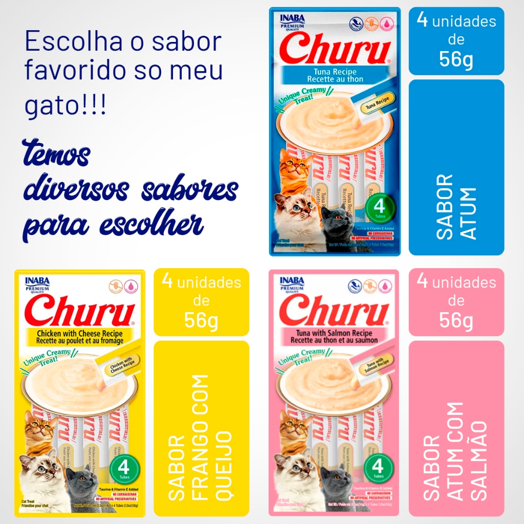 Petisco Para Gatos Churu 56g Contém 4 Tubets De 14g Cada Unidade - Vários Sabores