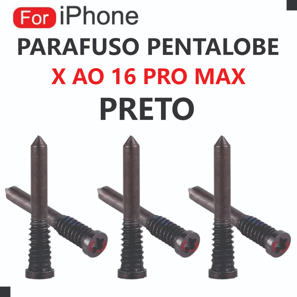 Kit 6 Parafuso Pentalobe iPhone X XS Max XR 11 12 13 14 15 16 Pro Max PLUS