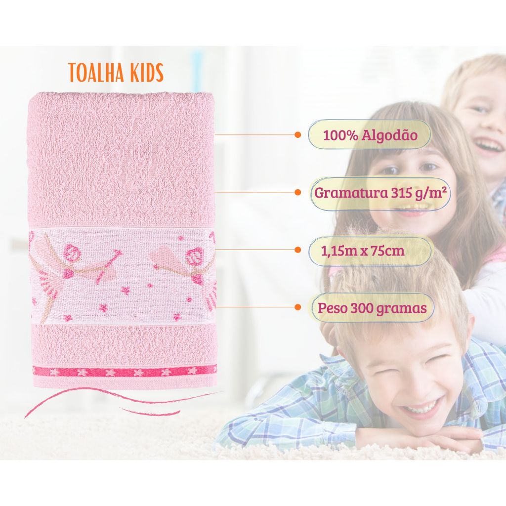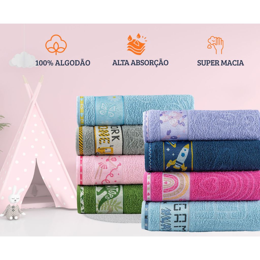 Toalha De Banho Kids Algodão Kit Com 2 Toalhas Infantil