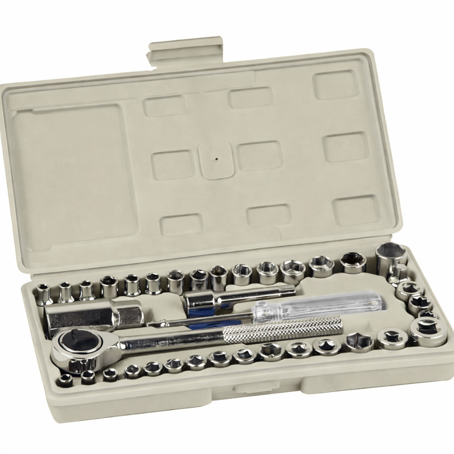 Kit Ferramentas 1 Catraca Soquetes Com 40 Peças Com Caixa Maleta