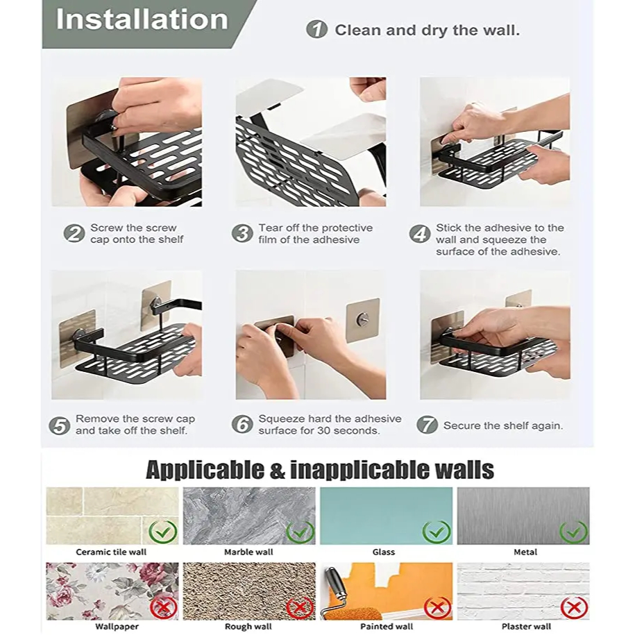 Suporte De Shampoo Prateleiras De Banheiro Sem Furo Premium Top sem furadeira Alumínio metálico