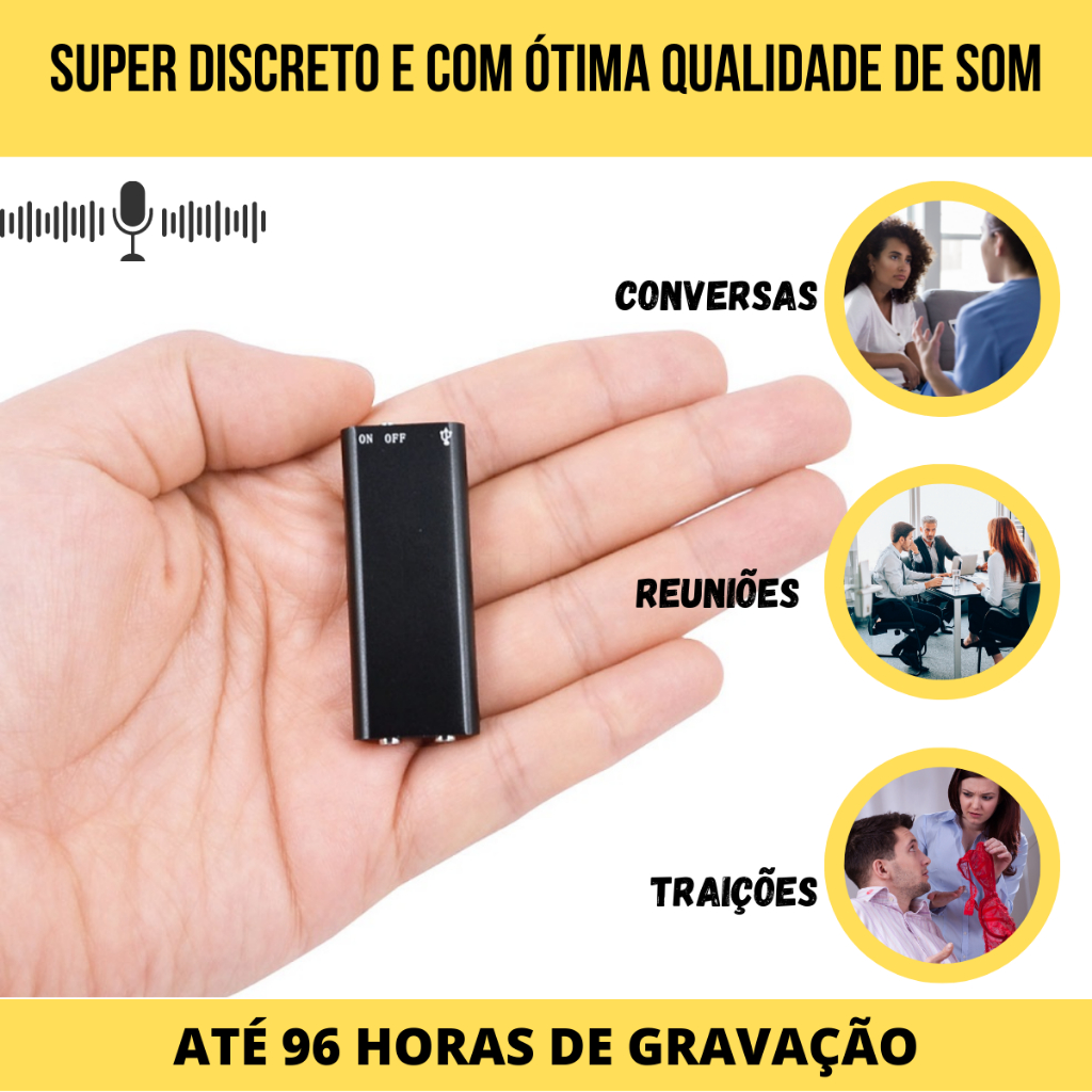 Mini Gravador de Voz Grava 96 Horas - Micro Escuta Profissional