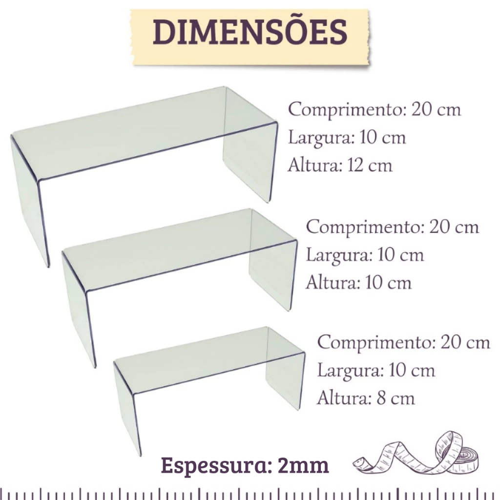 Kit 3 Plataforma de Doces Torta Expositora Decoração Vitrines nichos estantes Elevação U