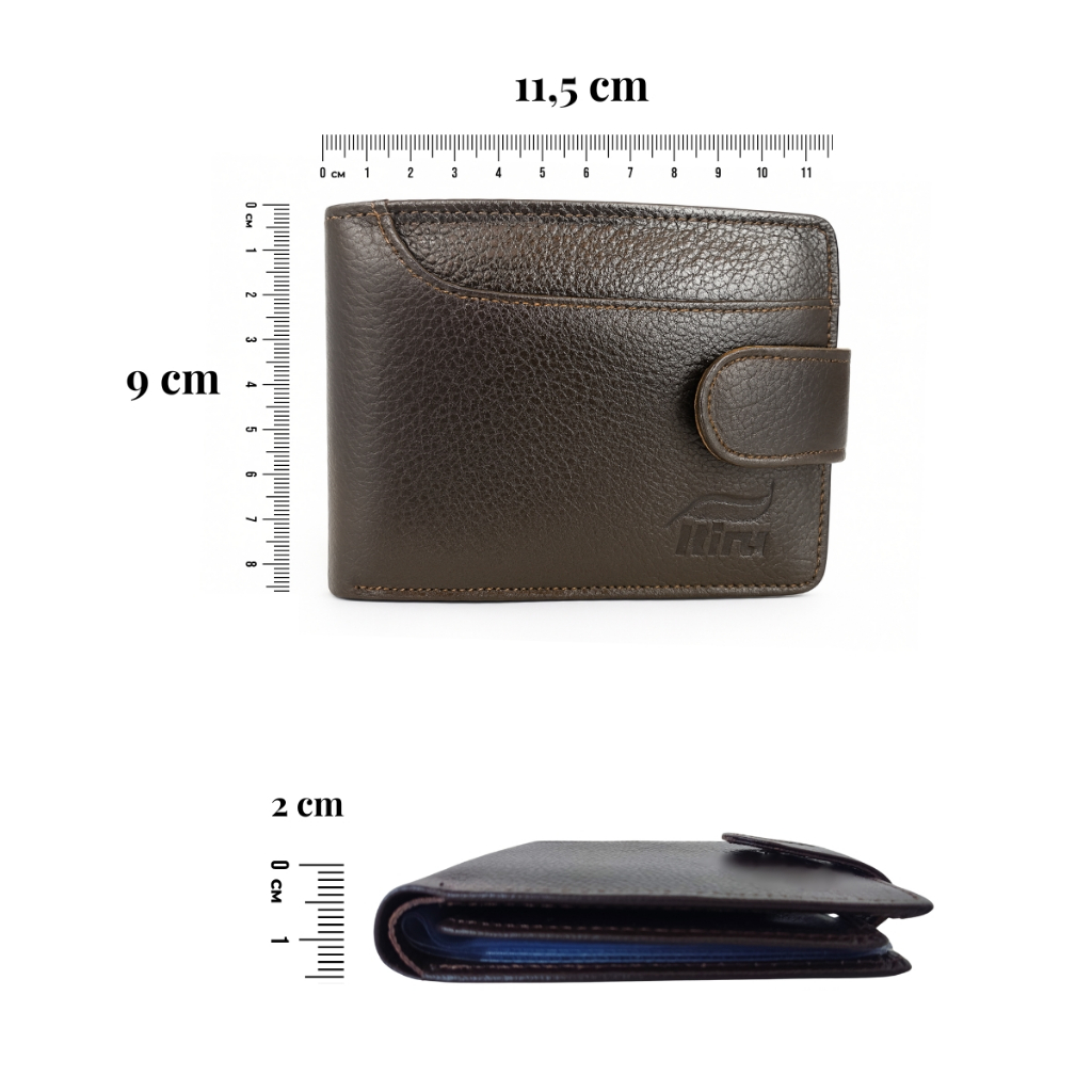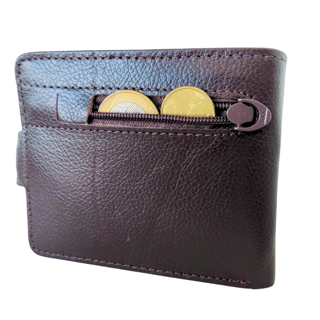 Carteira de Couro Marron Legítimo 100% Masculina Fecho Porta Moedas Presente Couro Fino Marrom Café