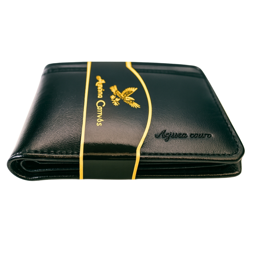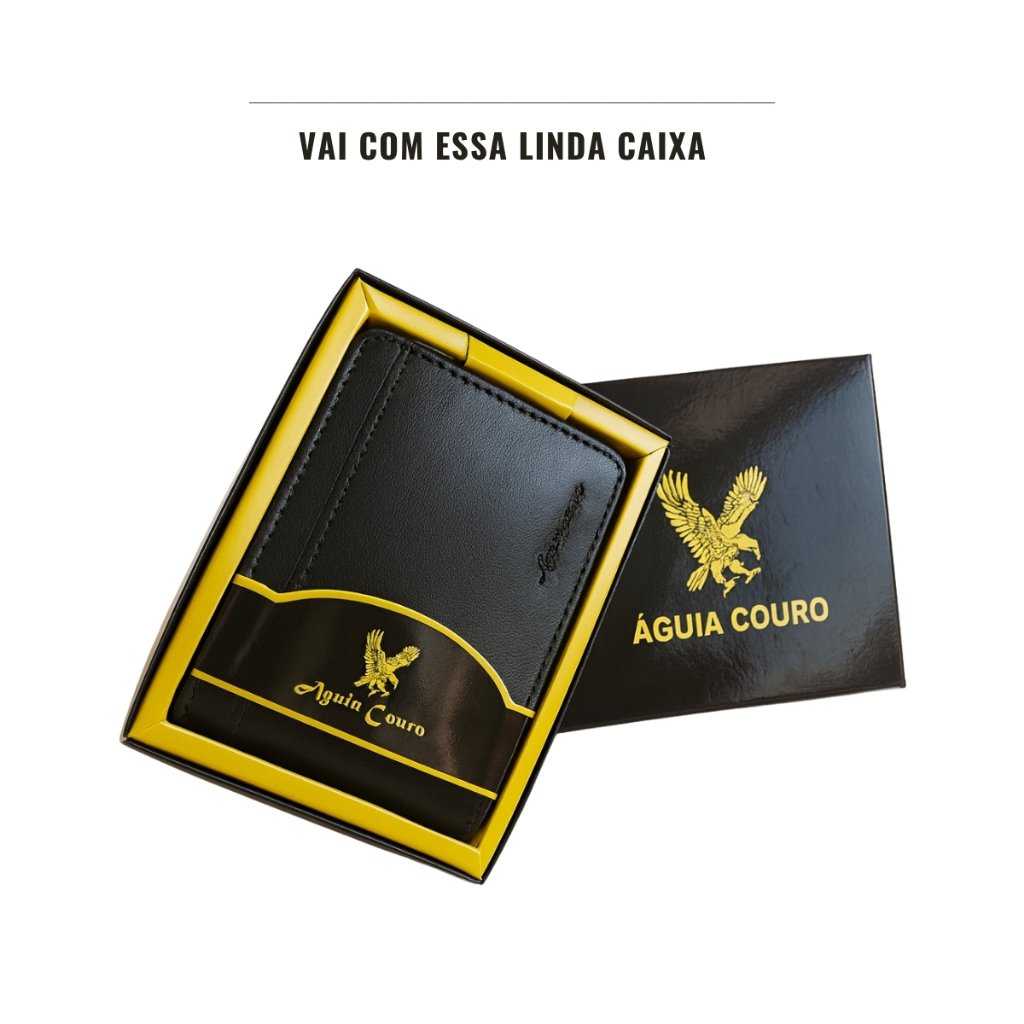 Carteira Masculina de Couro Legítimo Preto Águia Couro Presente Para Homem