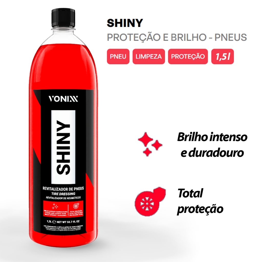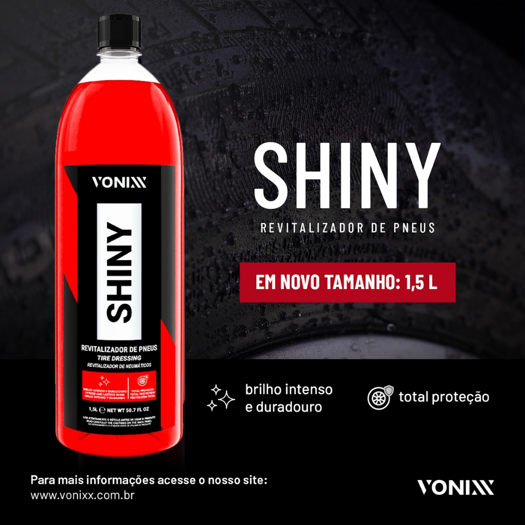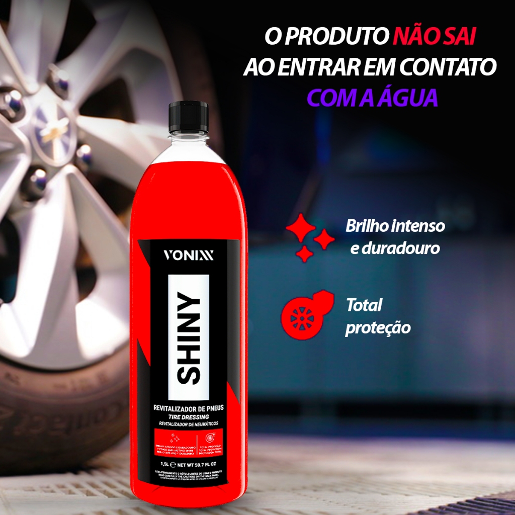 Shiny Revitalizador Pneu Selante Pretinho impermeável Proteção Super Brilho Duração 1,5 L Vonixx