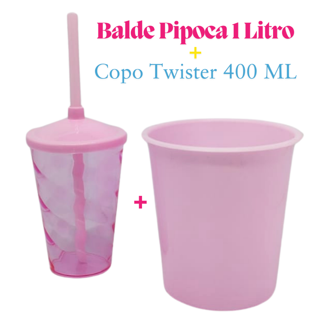 35 Kit Festa Baldinho Pipoca 1Lt + 35 Copos Twister 400 Ml Lembrancinha Cinema Chá Reveleção