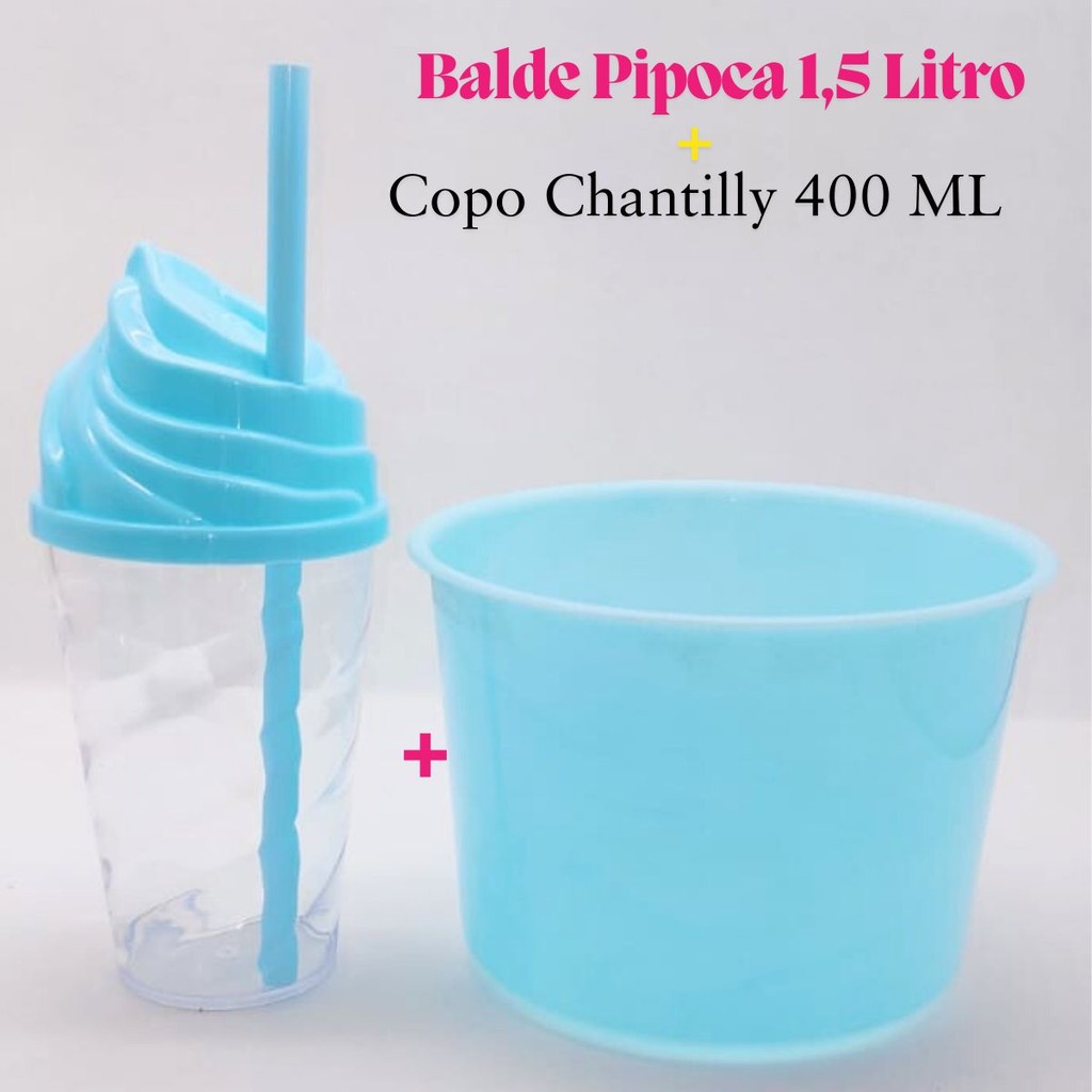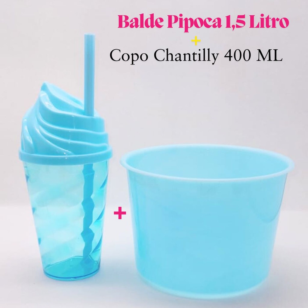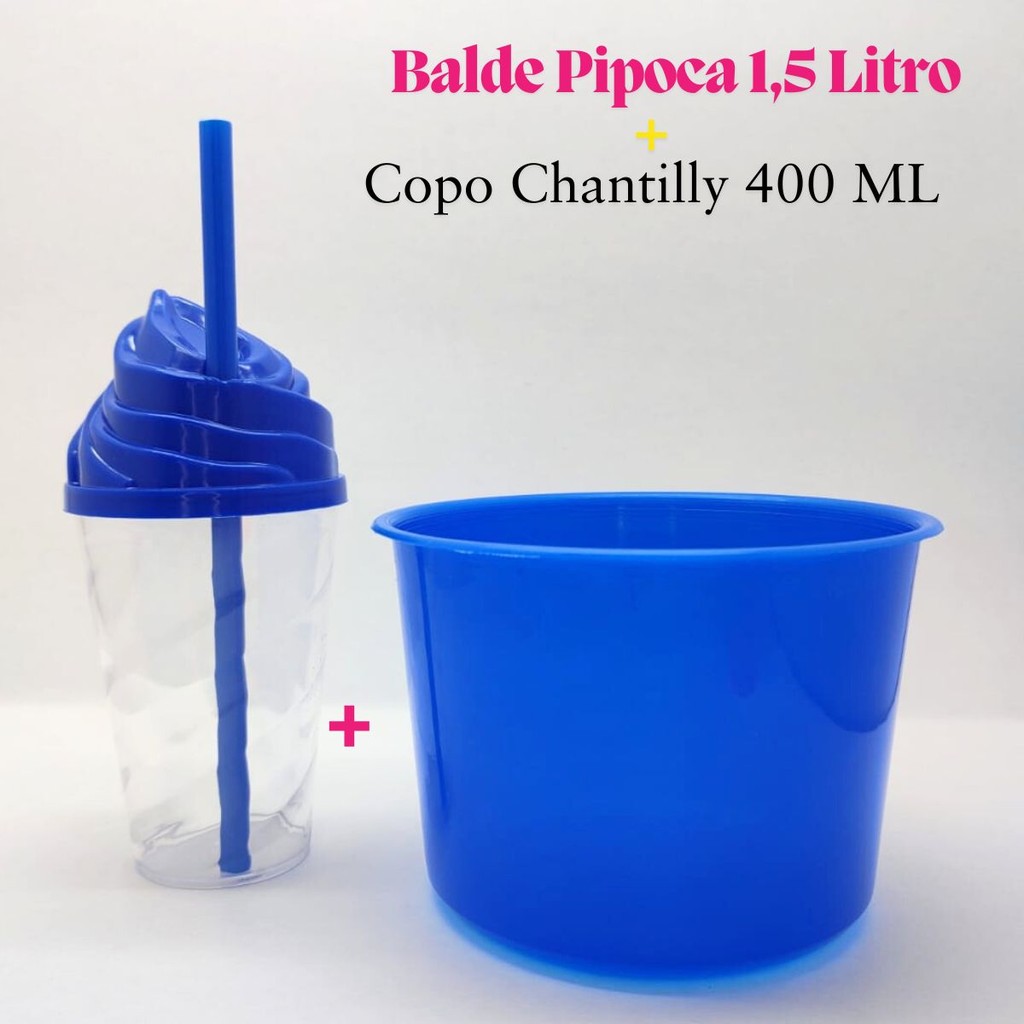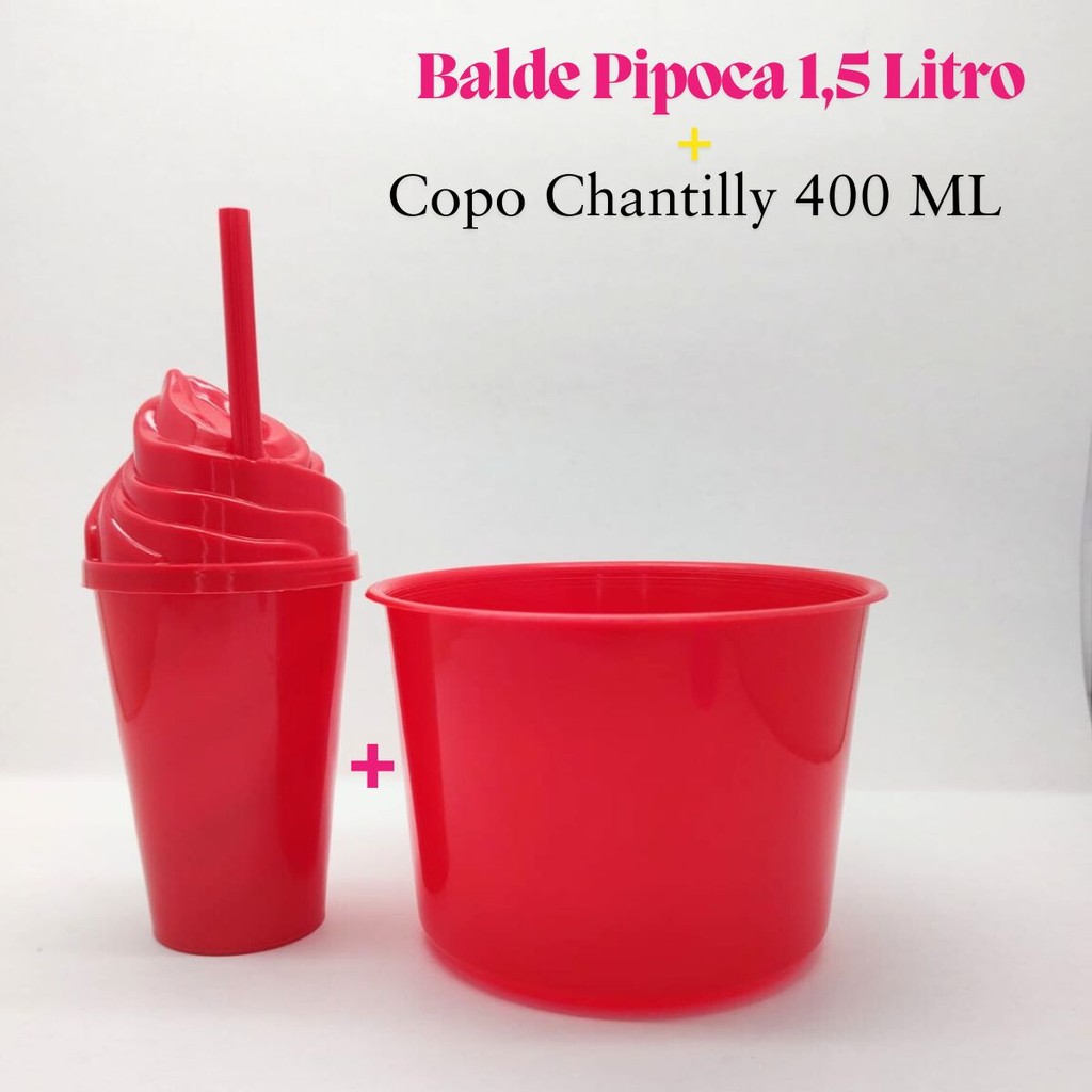 Kit Cinema Lembrancinha 10 Balde Pipoca 1,5 LT + 10 Copo Chantily 400ml Festa Aniversário Infantil