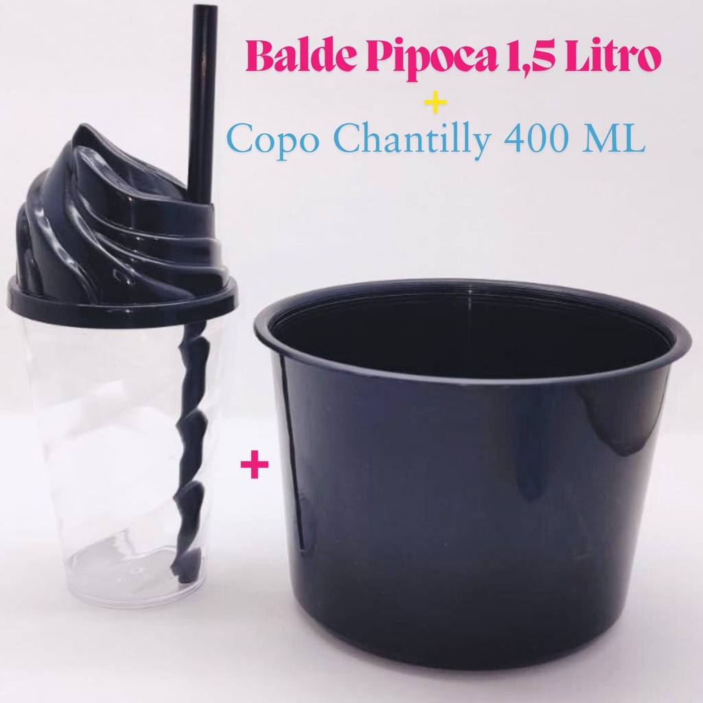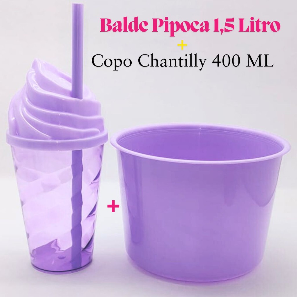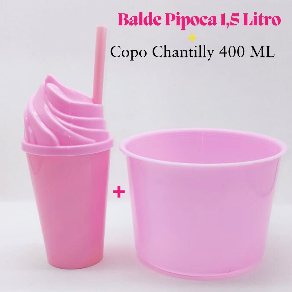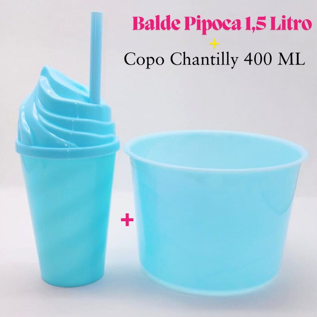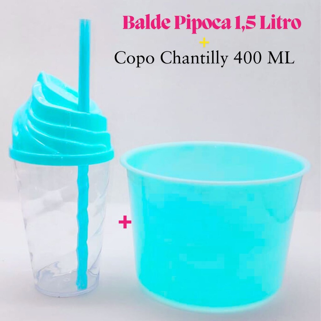 Kit Cinema Lembrancinha 10 Balde Pipoca 1,5 LT + 10 Copo Chantily 400ml Festa Aniversário Infantil