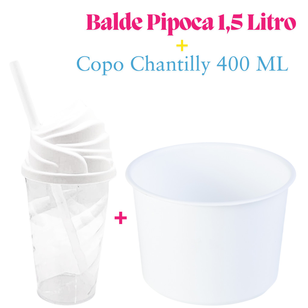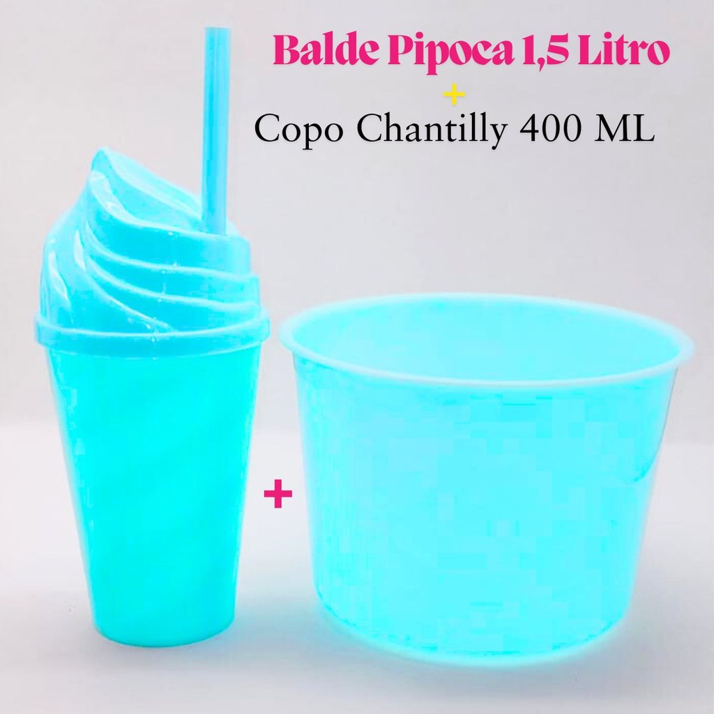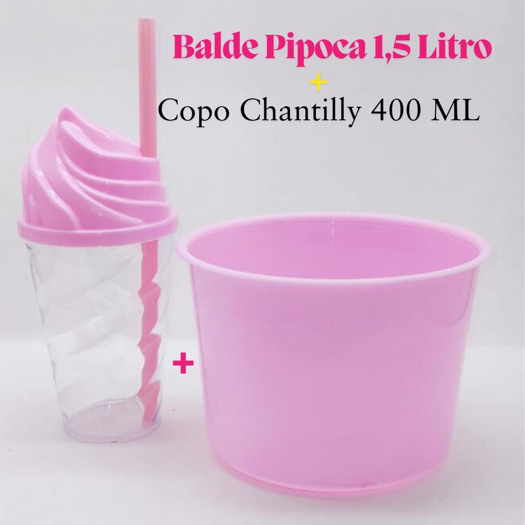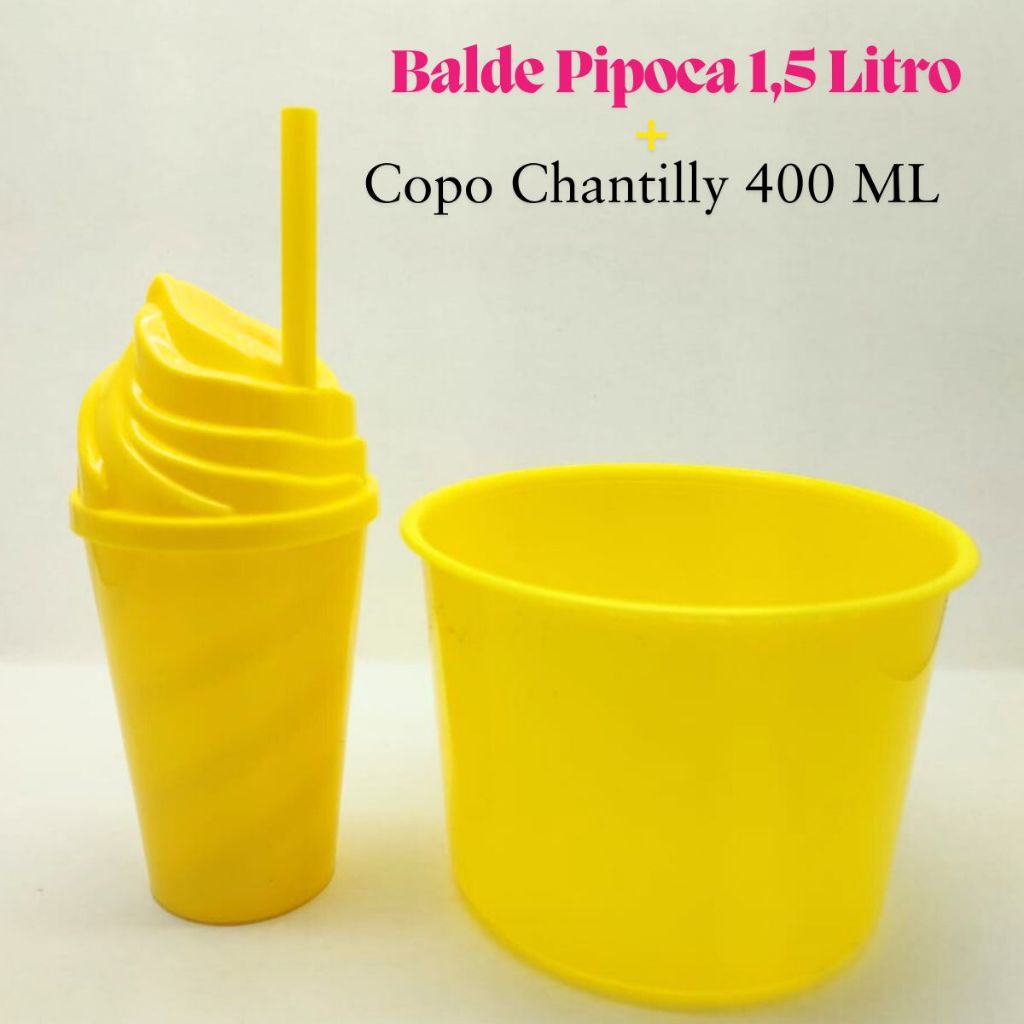 Kit Cinema Lembrancinha 10 Balde Pipoca 1,5 LT + 10 Copo Chantily 400ml Festa Aniversário Infantil