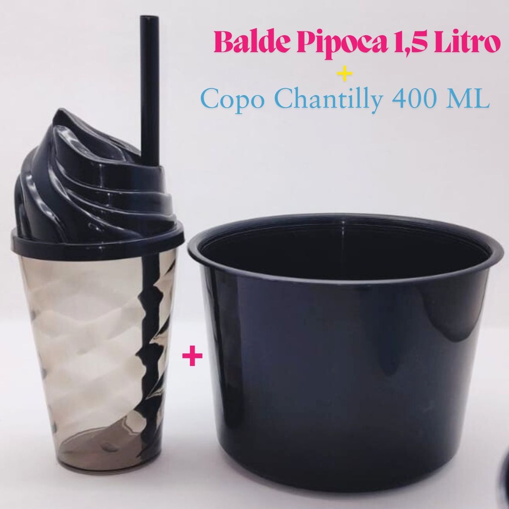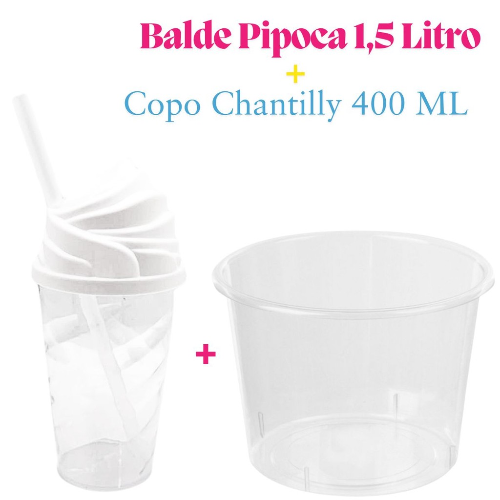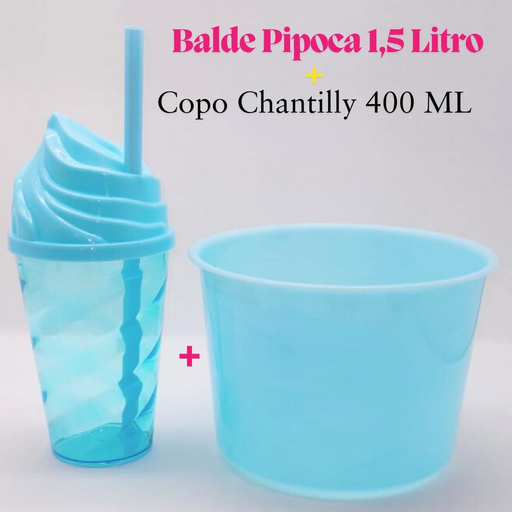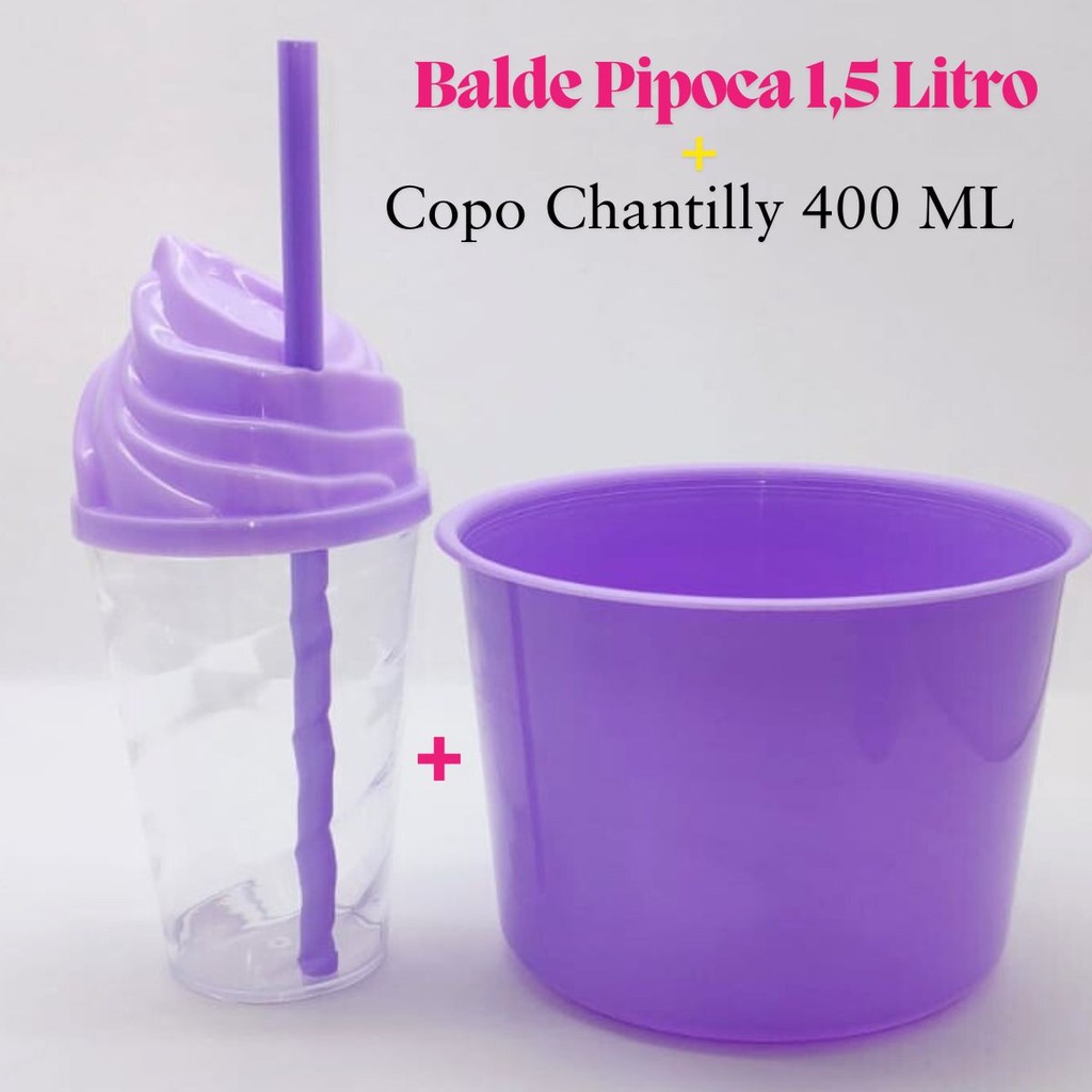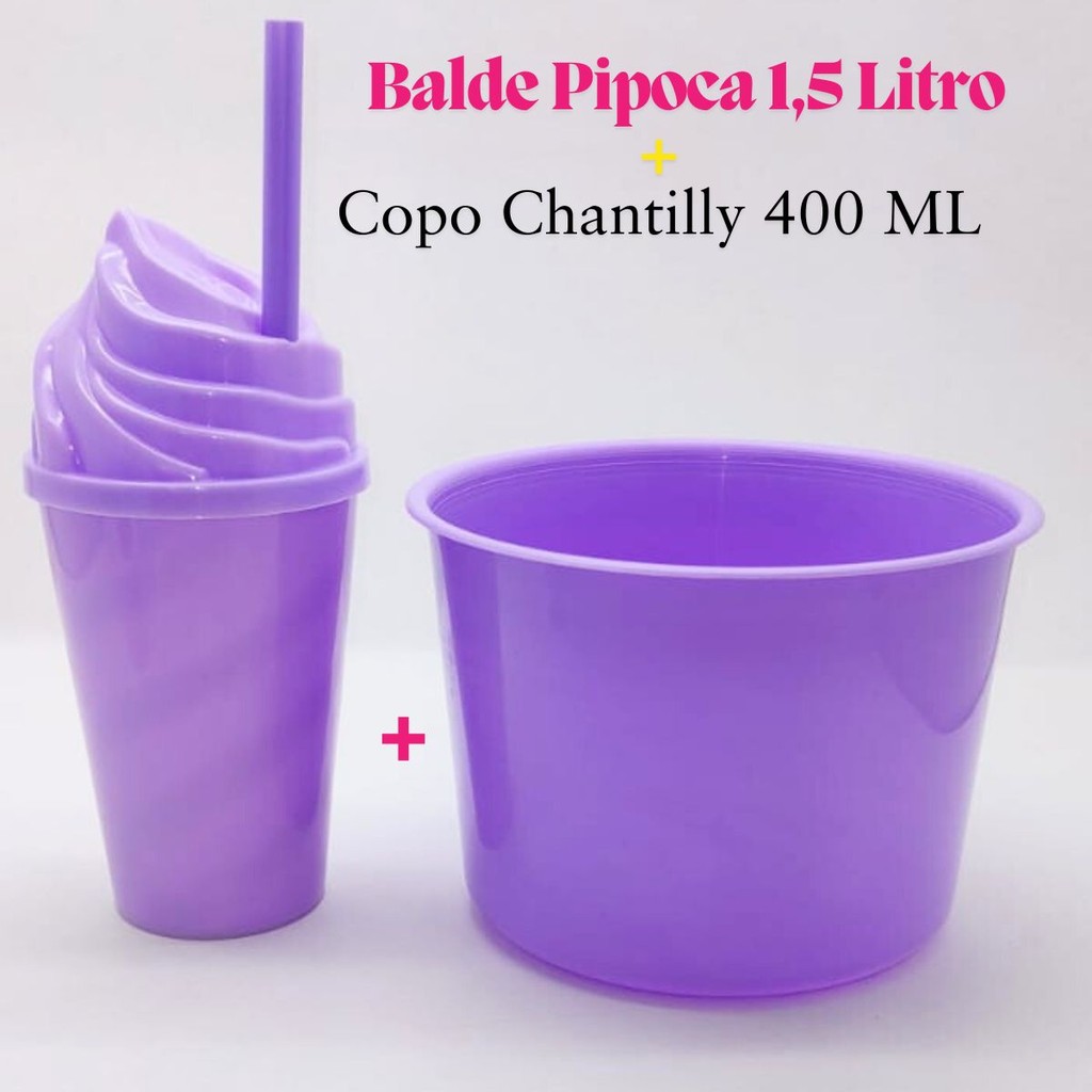 Kit Cinema Lembrancinha 10 Balde Pipoca 1,5 LT + 10 Copo Chantily 400ml Festa Aniversário Infantil