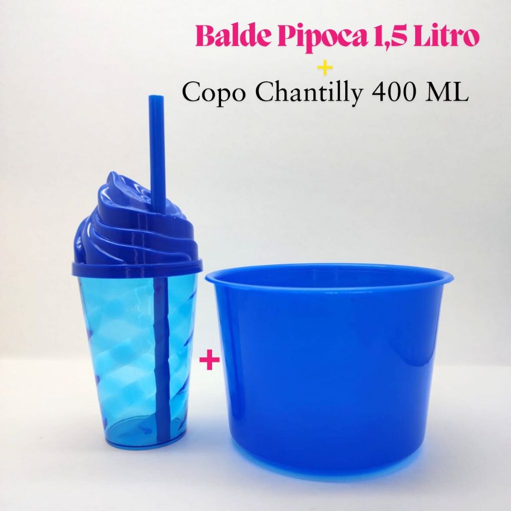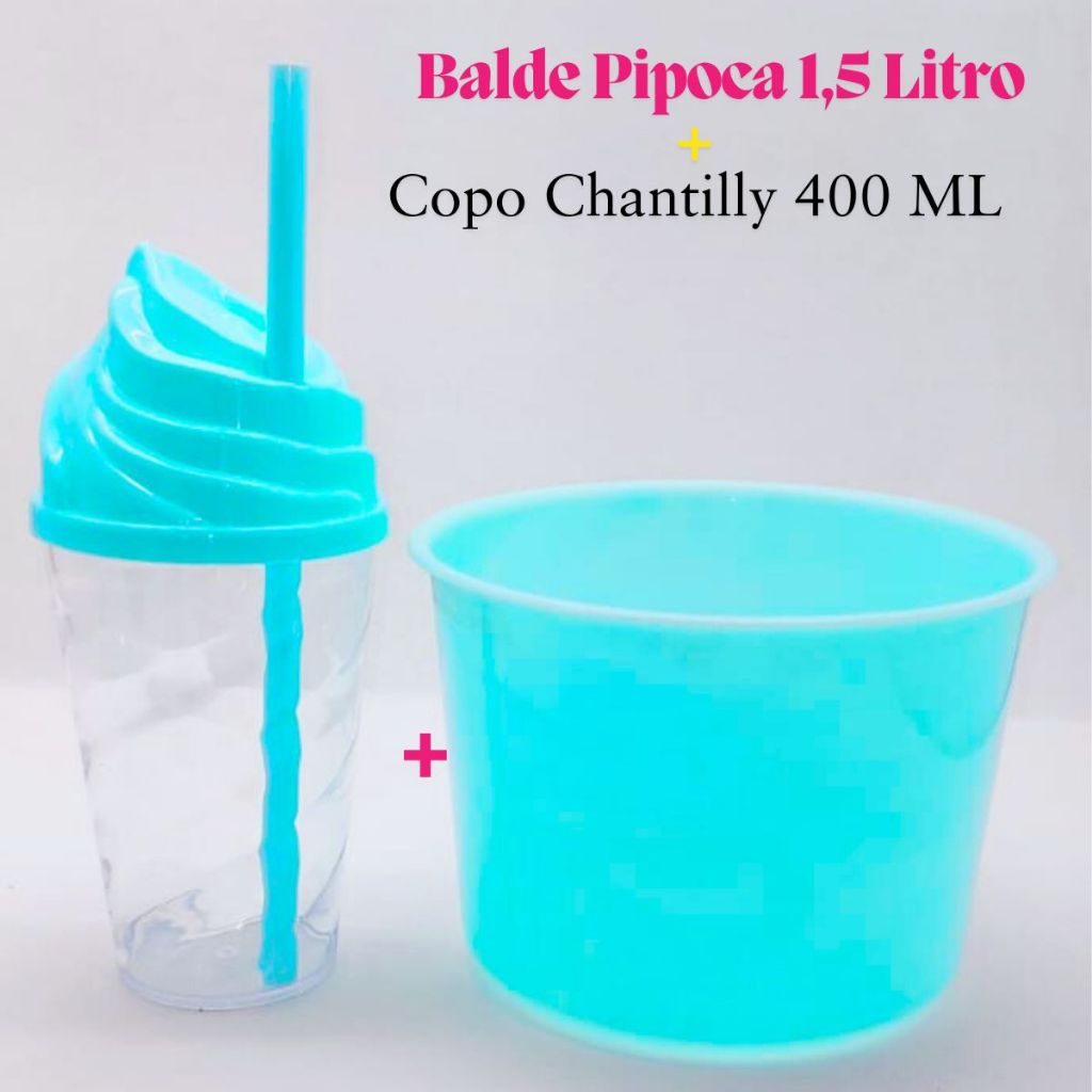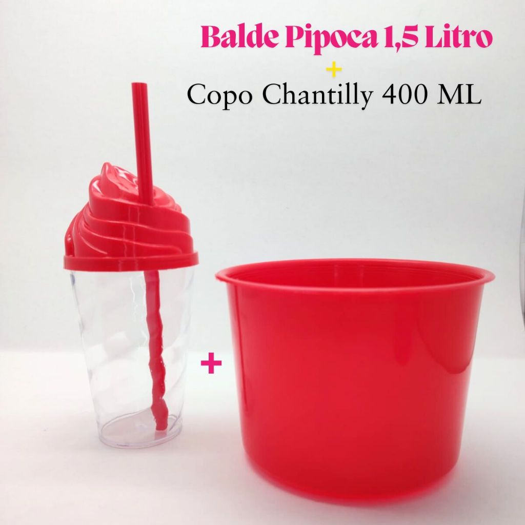Kit 20 Balde Pipoca 1,5 L+ 20 Copo Chantily 400 ML Aniversario Festa Evento