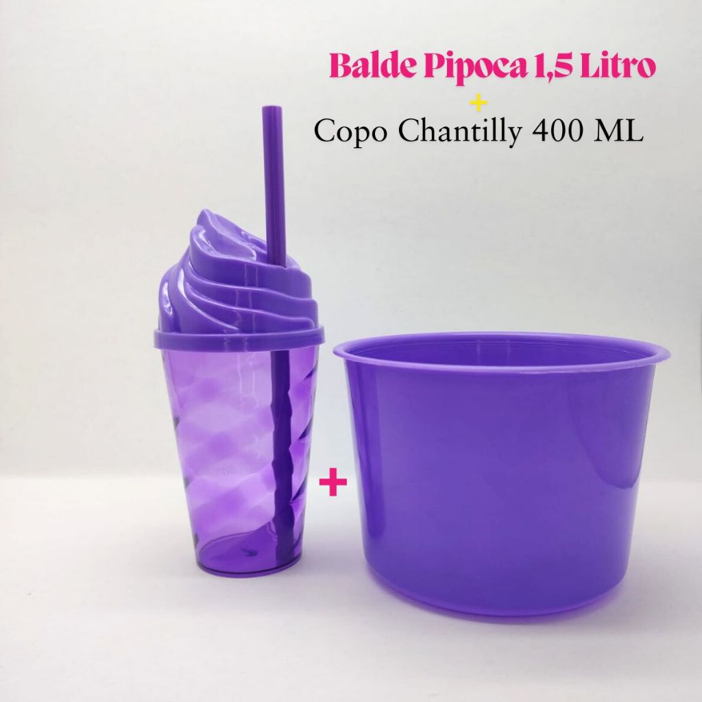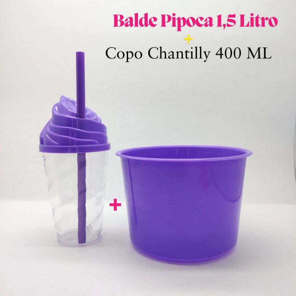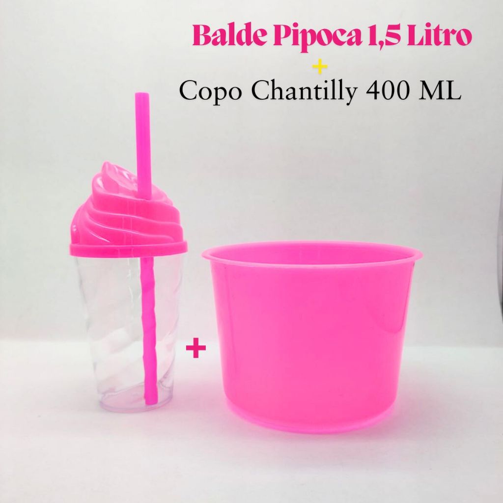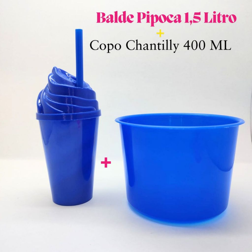 Kit 20 Balde Pipoca 1,5 L+ 20 Copo Chantily 400 ML Aniversario Festa Evento