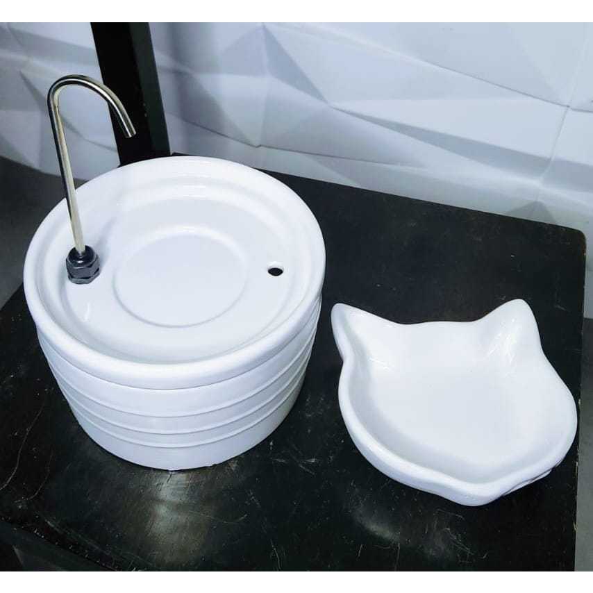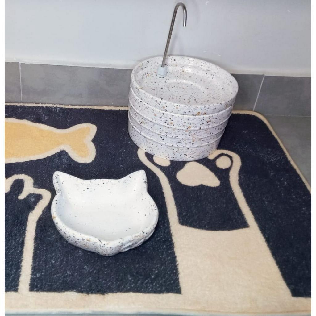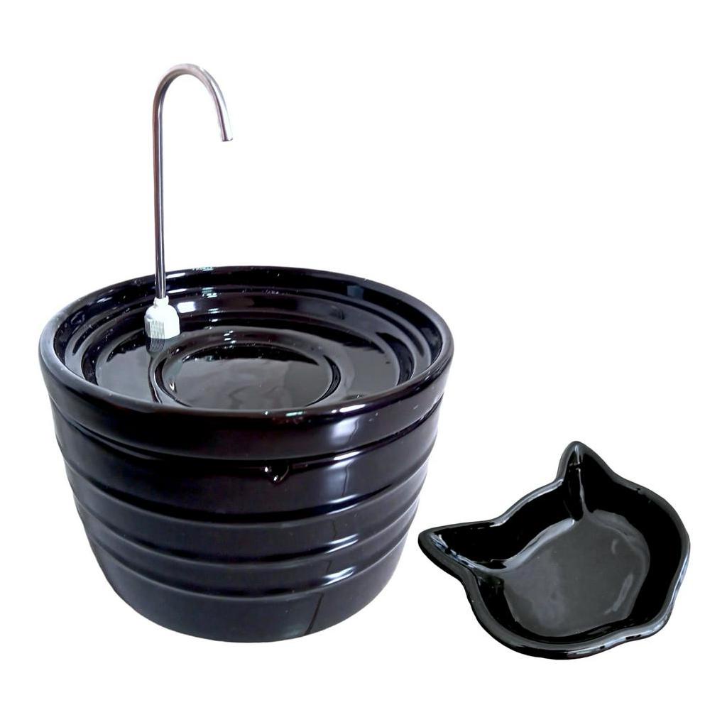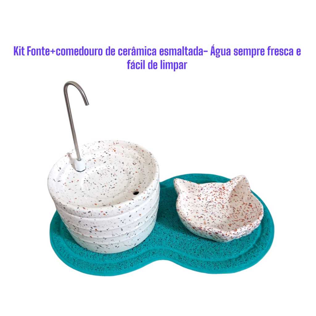 Bebedouro + Comedouro para Gatos de Cerâmica Esmaltada Fonte Pet