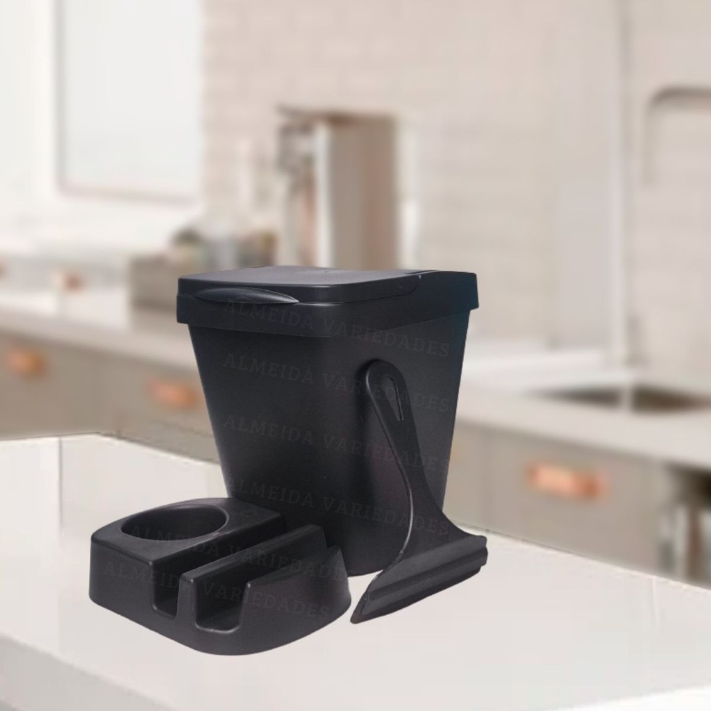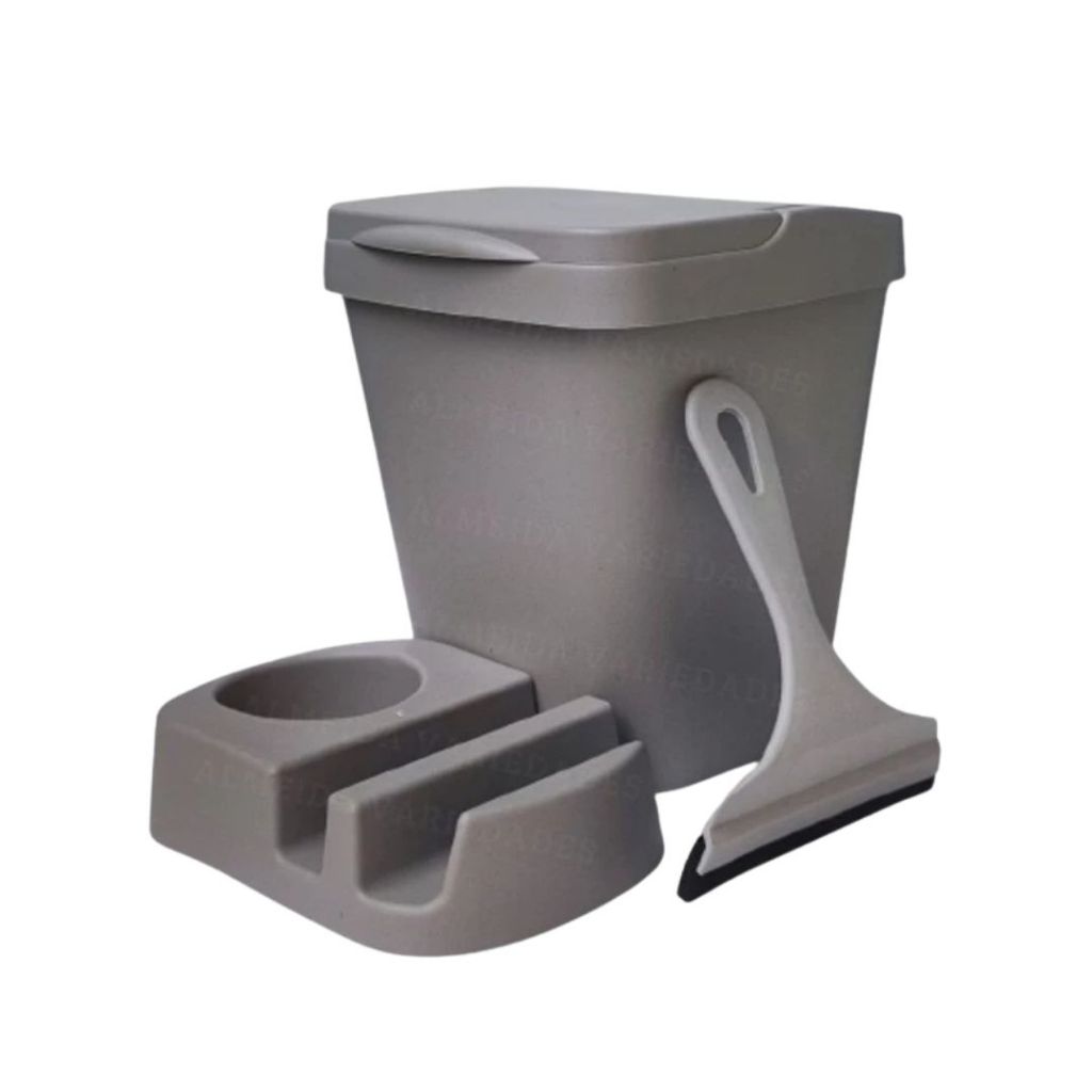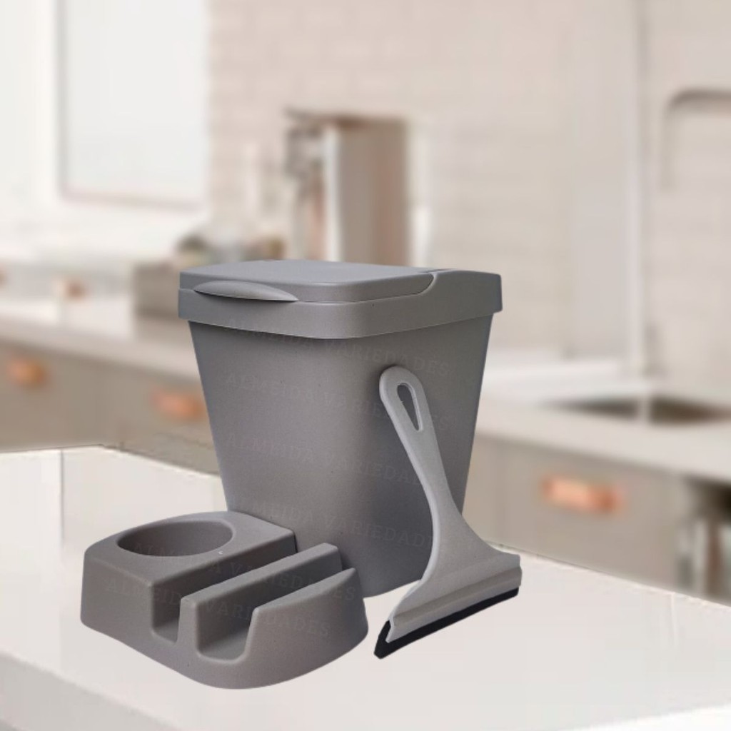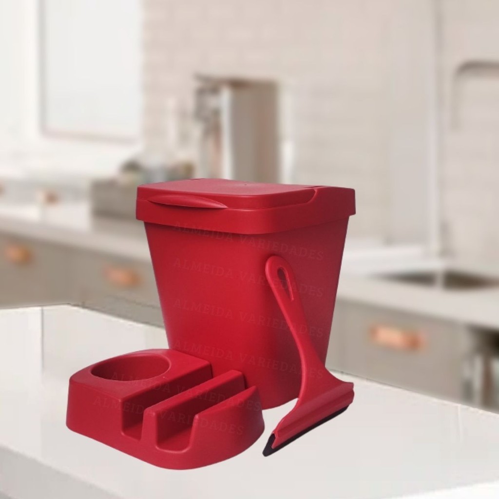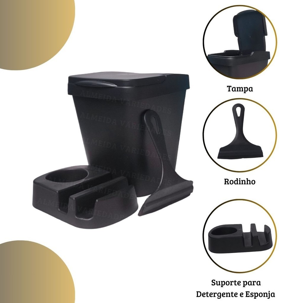 Kit Pia Multiuso Elegance Porta Detergente Rodinho de Pia Lixeira 4,8 Litros