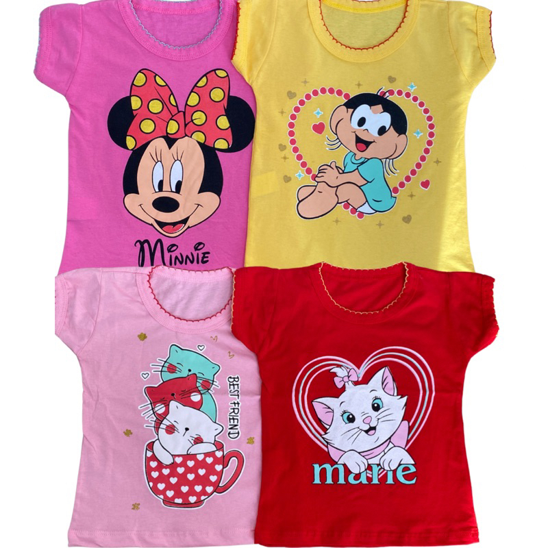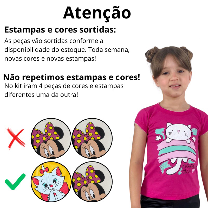 Roupa Infantil Menina Kit Sortido Com 4 Blusas Infantil 100% Algodão Varias Estampas
