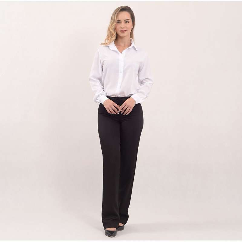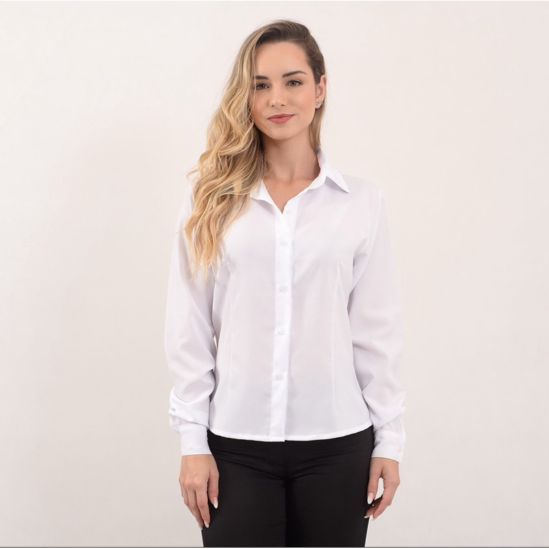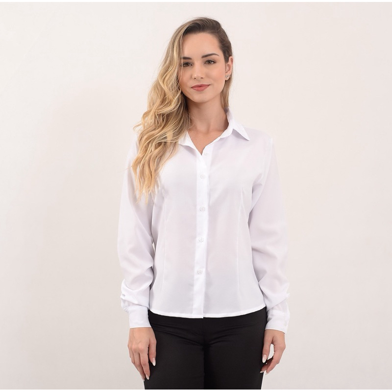 Camisete feminina manga longa blusa preta camisa social casual para trabalho.