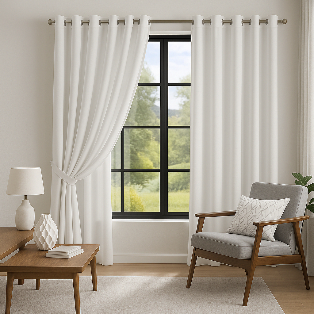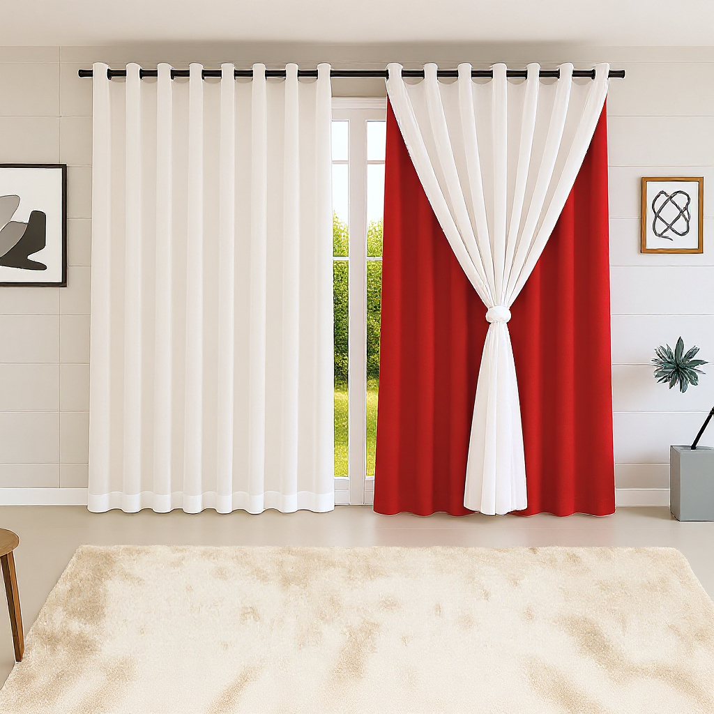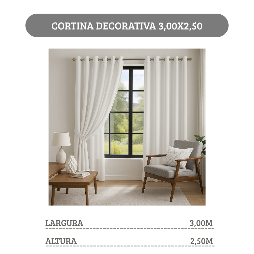 Cortina MADRI LUXO 3,00 x 2,50 c/ VOIL Branco - Decoração Quarto, Sala, Escritório, Janela