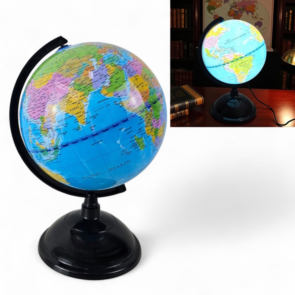 Globo Terrestre Giratório Luminoso De Mesa Abajur Led 20cm