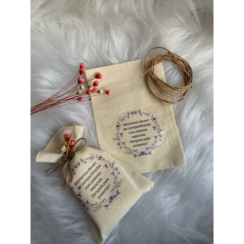 kit 20 saquinhos sacolinha 10x15 personalizado com arte própria em algodão crú