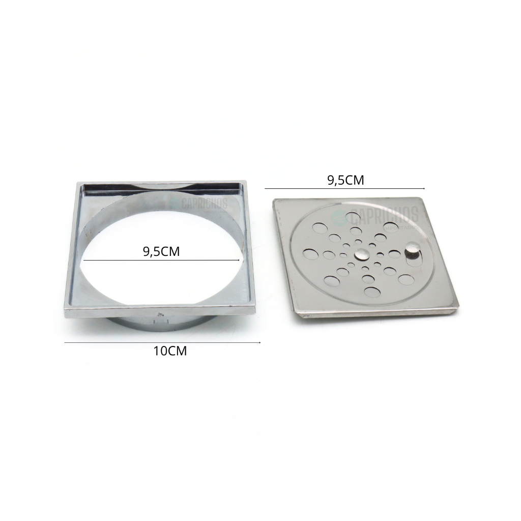 Ralo 10x10 Inox Grelha + Porta Ralo Em Abs Quadrado Cromo banheiro quintal