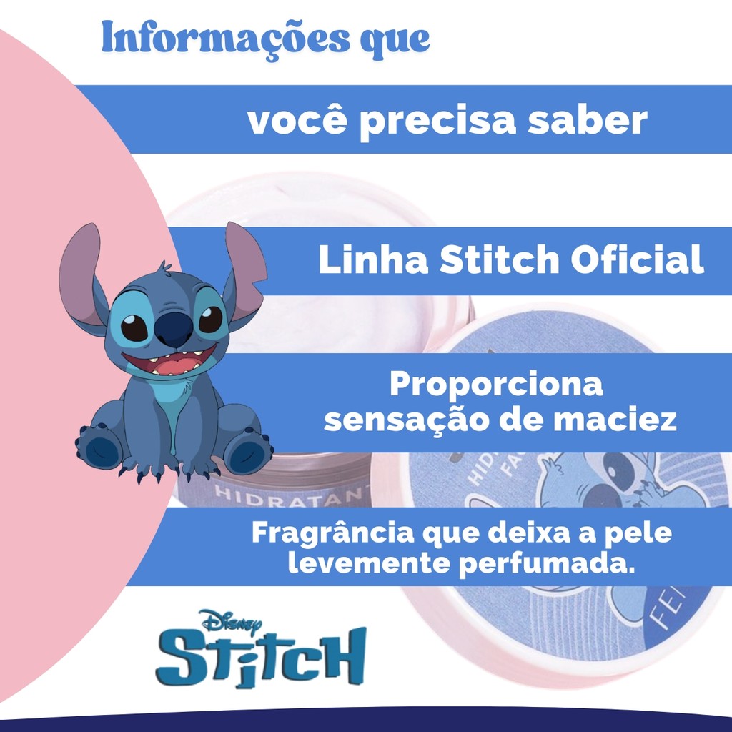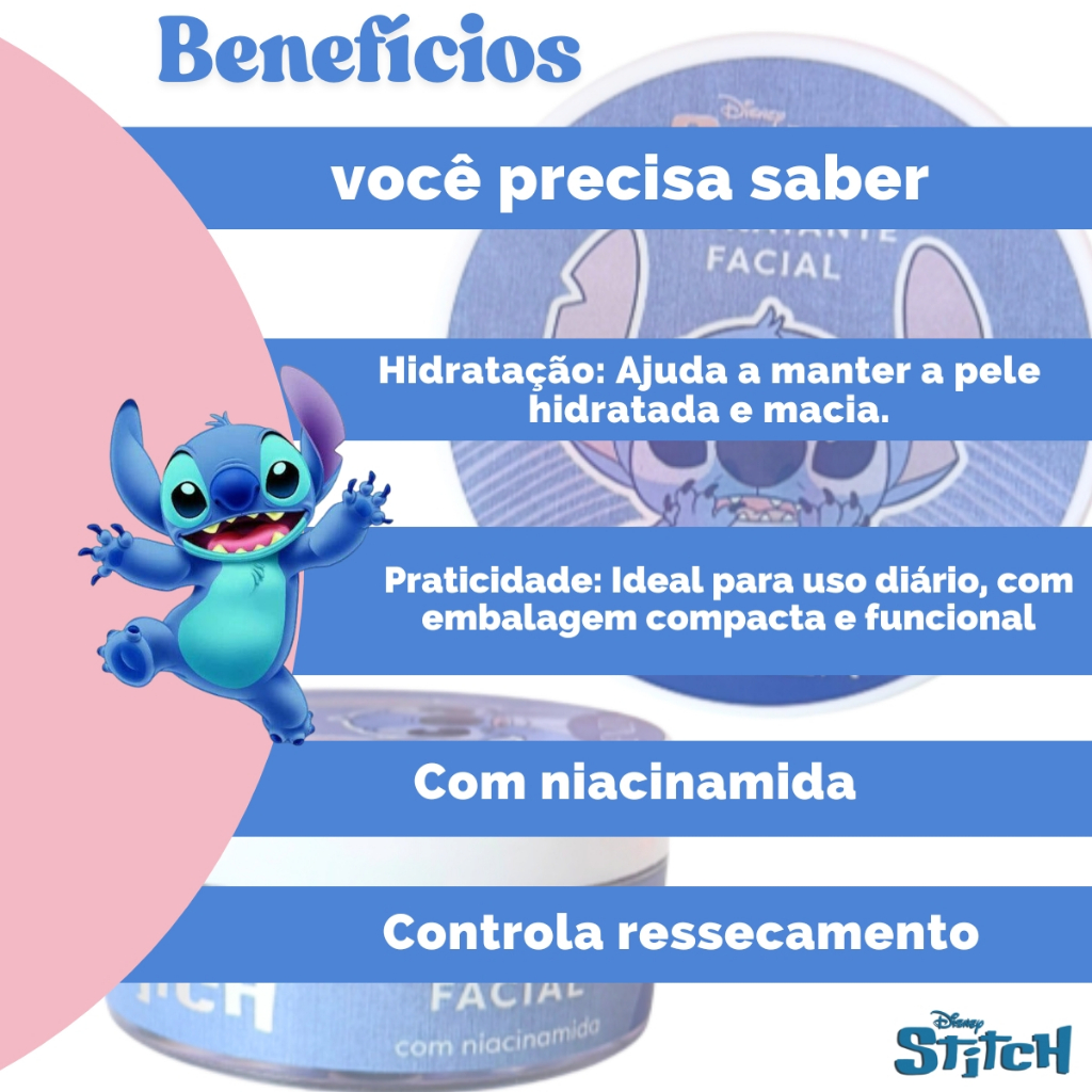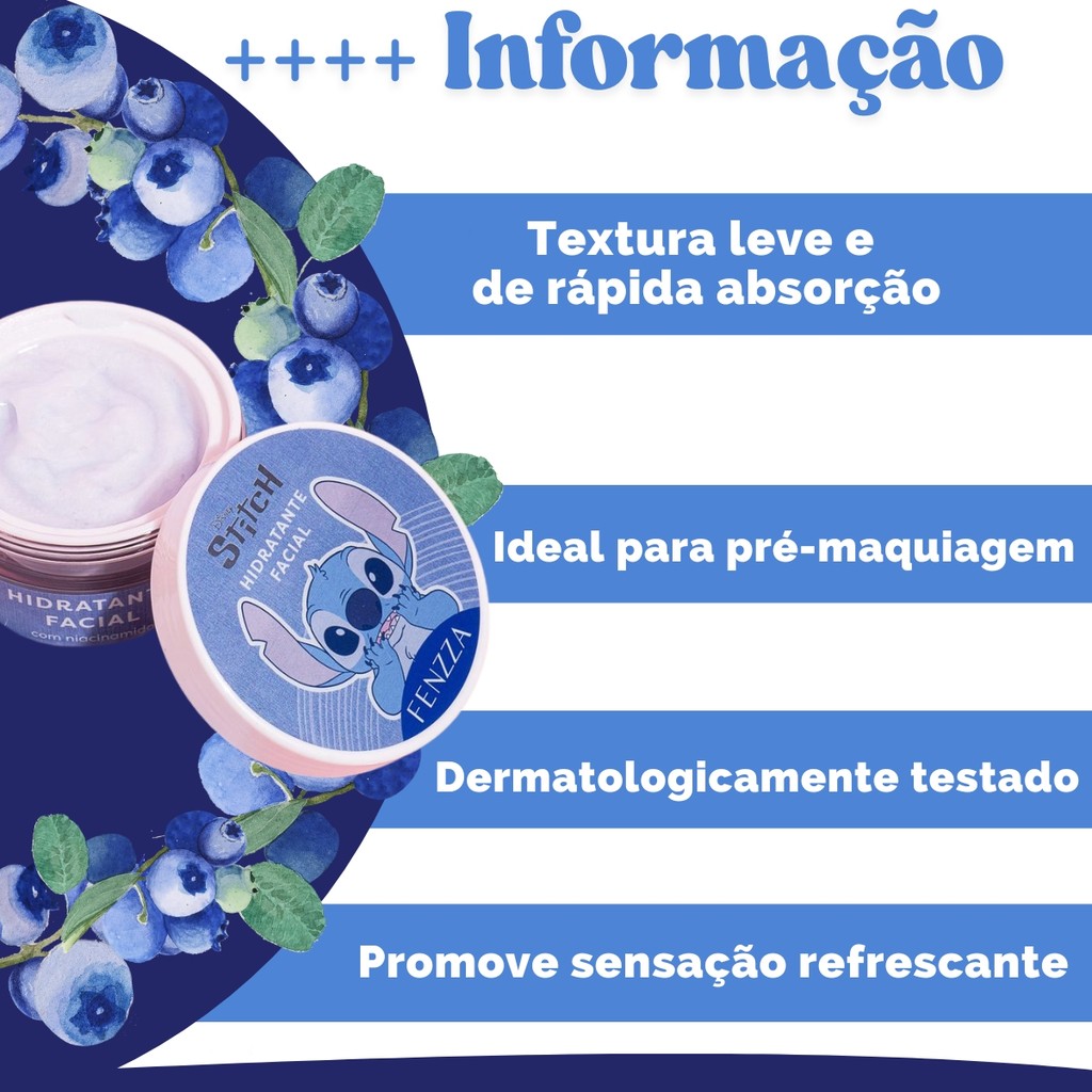 Hidratante Facial STITCH Disney 30g - Skincare - Cuidado com a Pele, Cheiro Suave de Blueberry - Licenciado - FEENZA