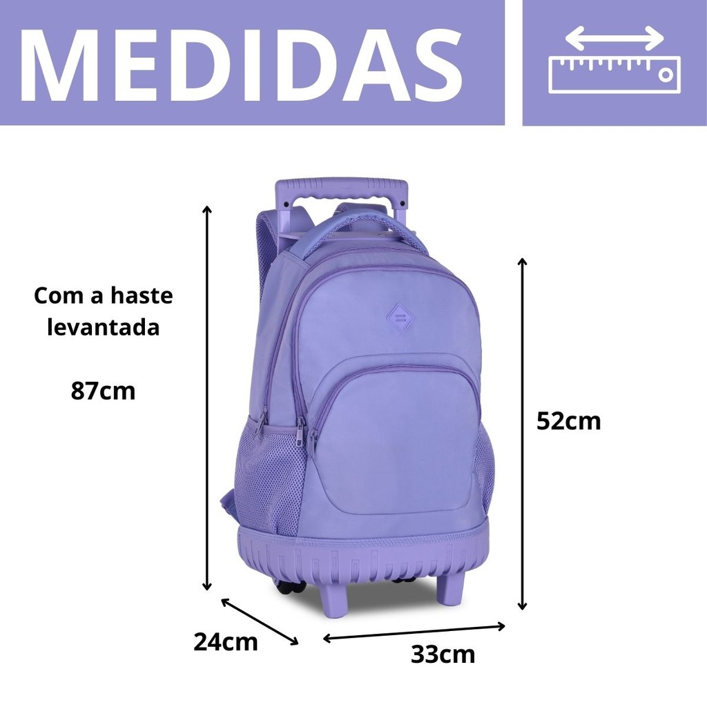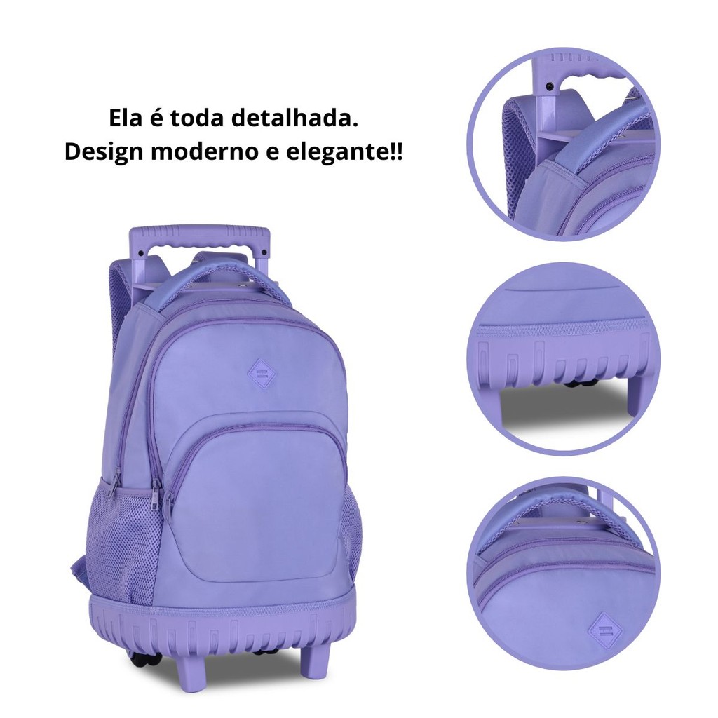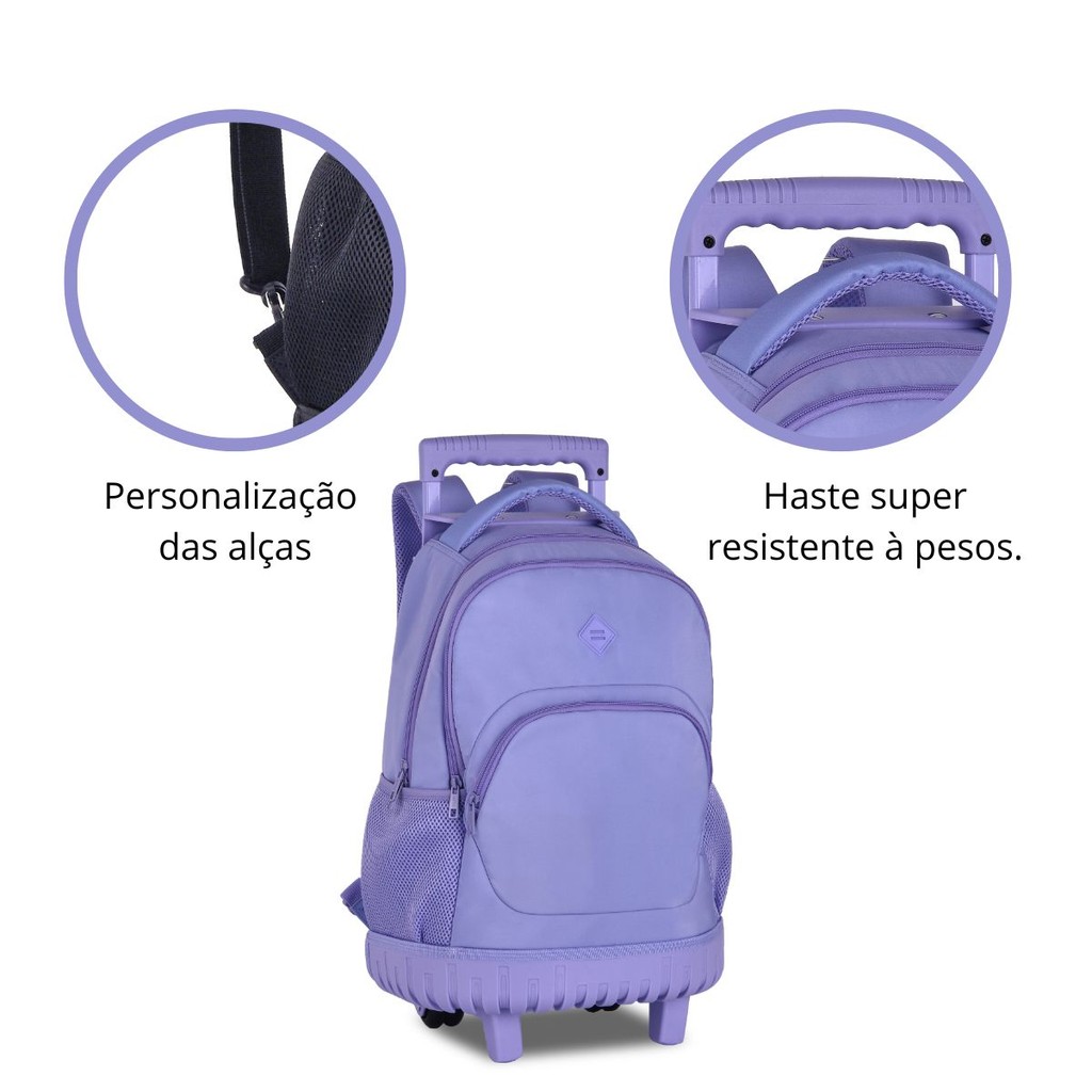 Mochila de Rodinhas For Girls 41L Juvenil Reforçada Feminina Escolar/Viagem - Clio