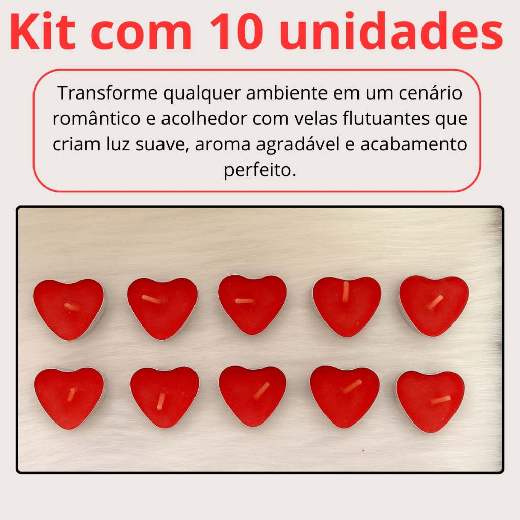 Vela Perfumada Coração Flutuante Decorativa kit com 10 Velas Namorados Decoração Casamento