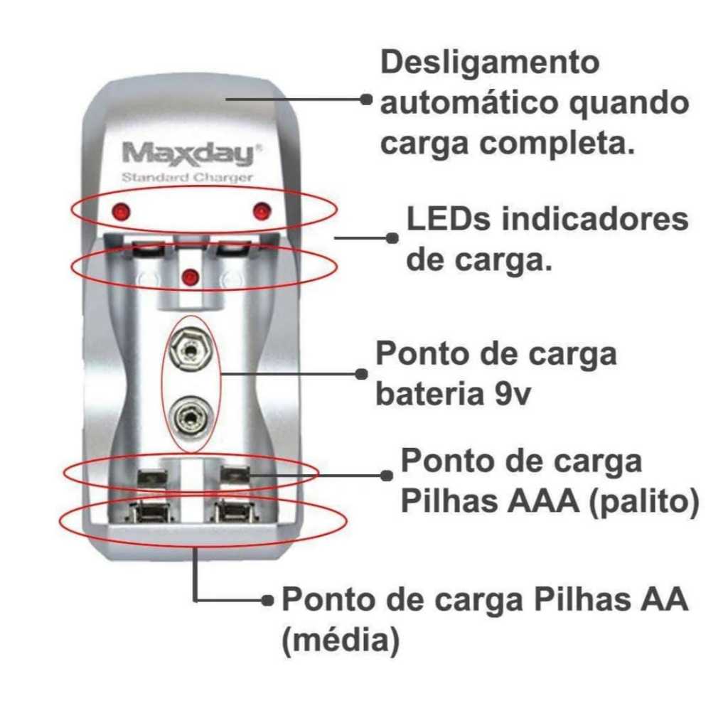 Kit Carregador Portátil + 2 Pilhas AA4800mah Recarregáveis-Atacado
